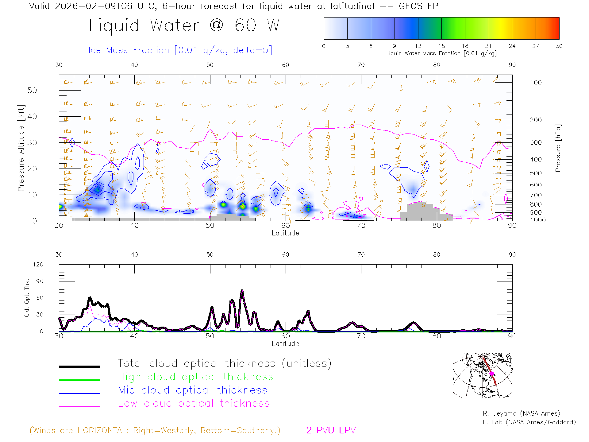 GEOS Forecast Cloud Water Content X-Section (60 W)