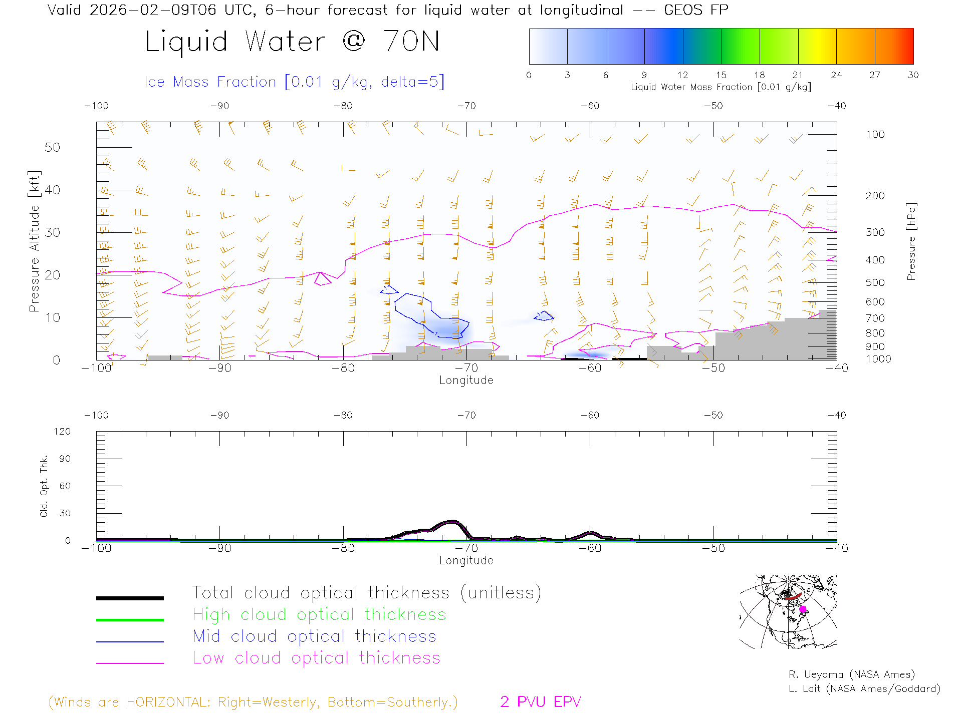 GEOS Forecast Cloud Water Content X-Section (70 N)
