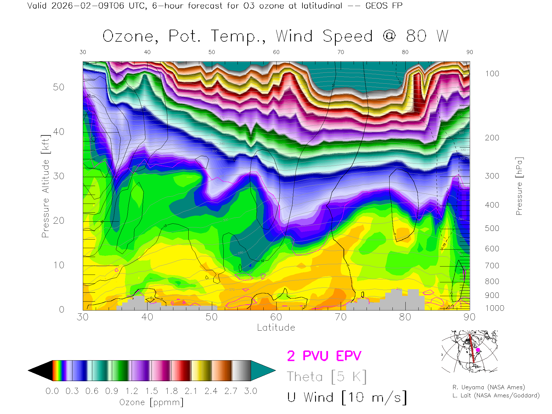 GEOS Forecast Ozone X-Section (80 W)