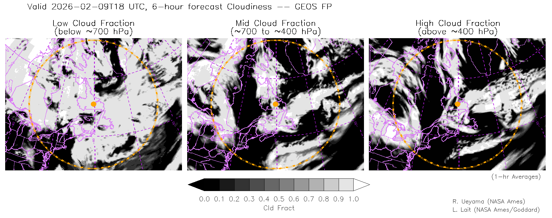 GEOS Forecast Cloud Fraction (High, Mid, Low)