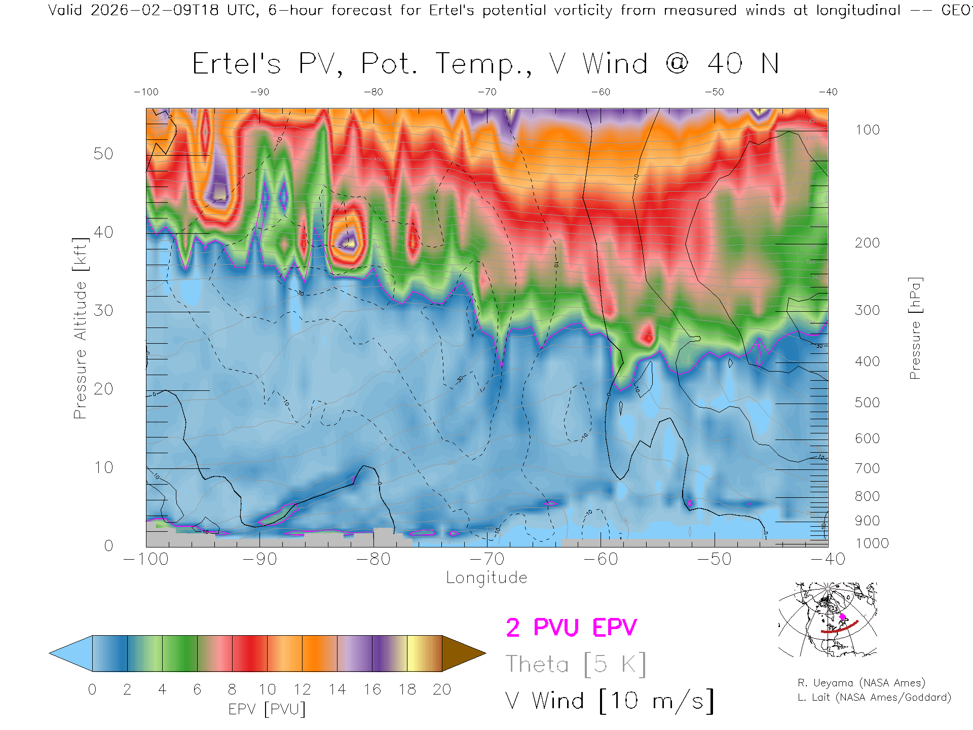 GEOS Forecast PV X-Section (40 N)