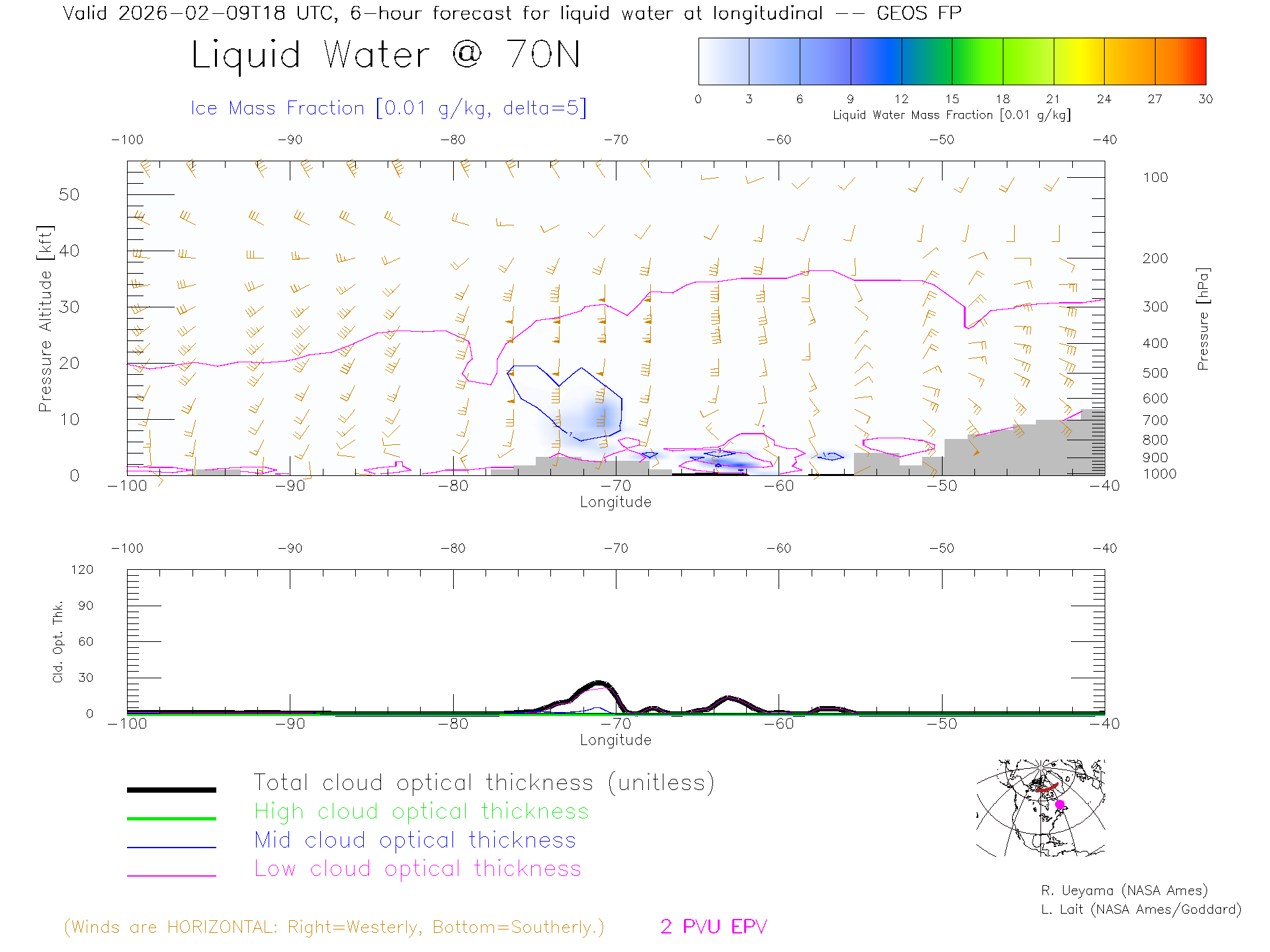 GEOS Forecast Cloud Water Content X-Section (70 N)