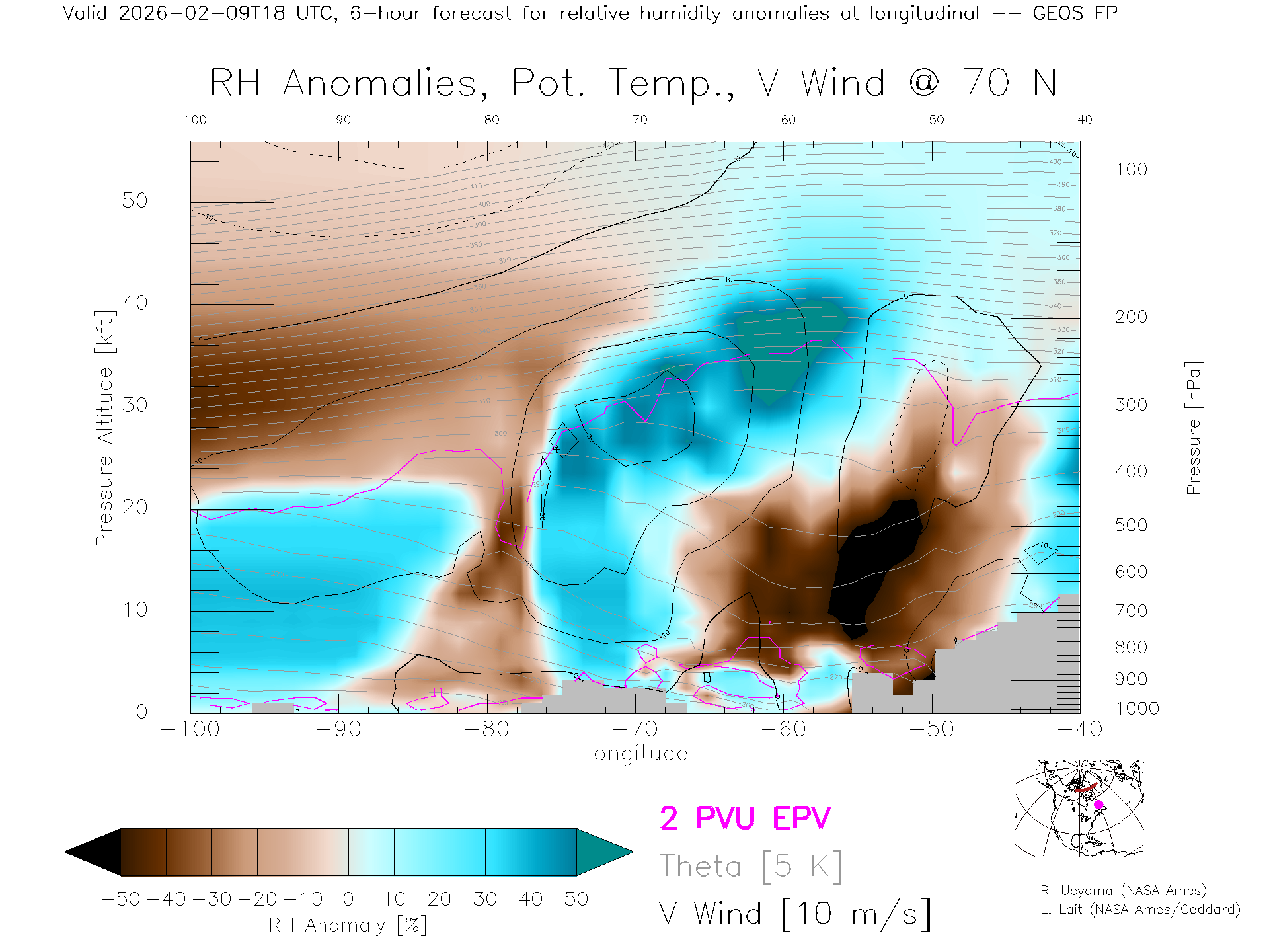 GEOS Forecast Rel. Hum. X-Section (70 N)