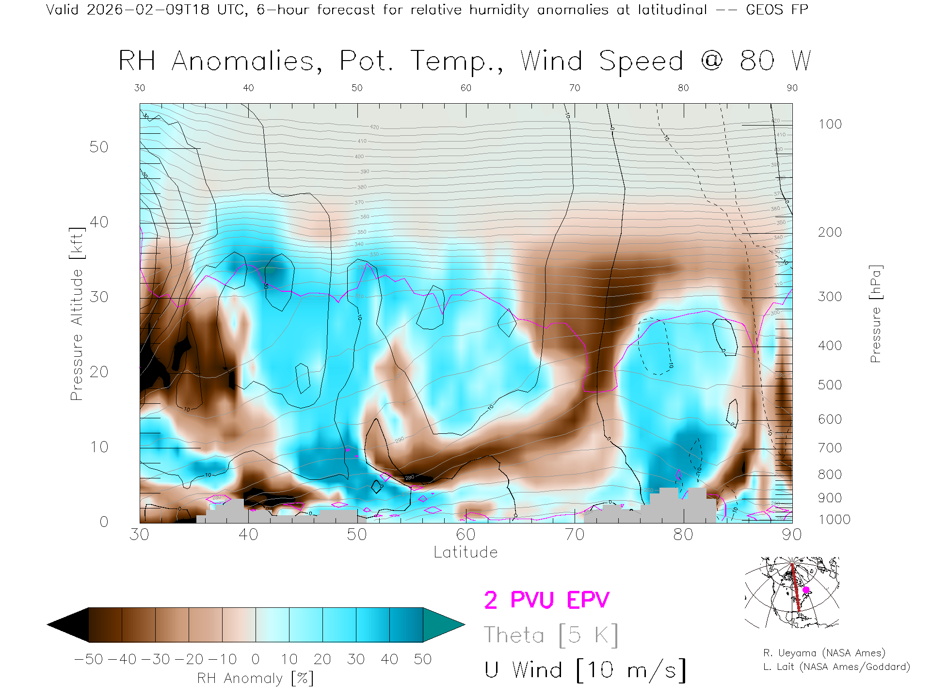 GEOS Forecast Rel. Hum. X-Section (80 W)