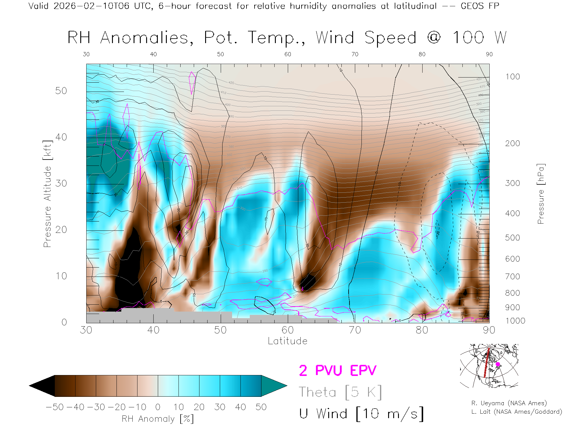 GEOS Forecast Rel. Hum. X-Section (100 W)