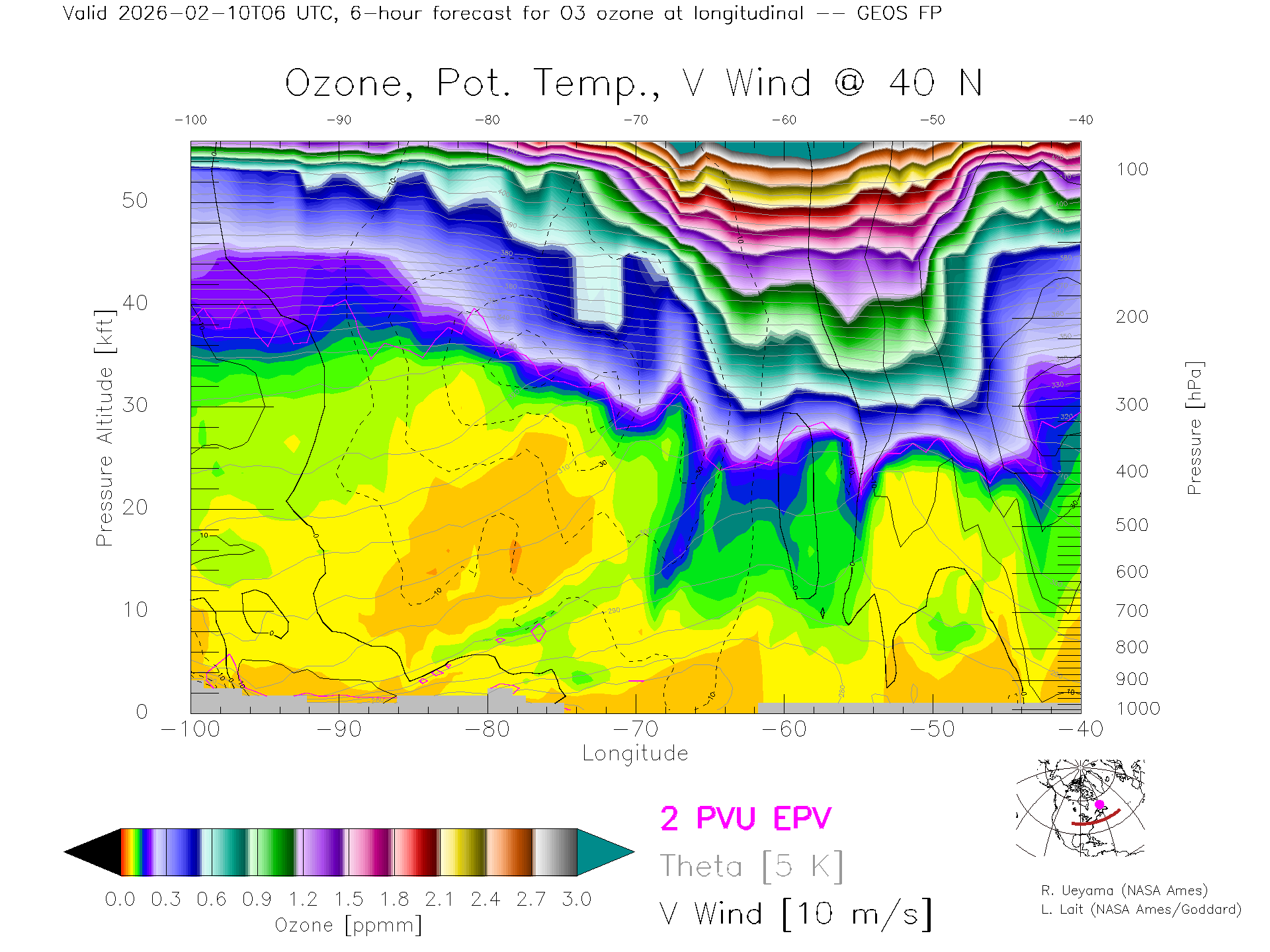 GEOS Forecast Ozone X-Section (40 N)