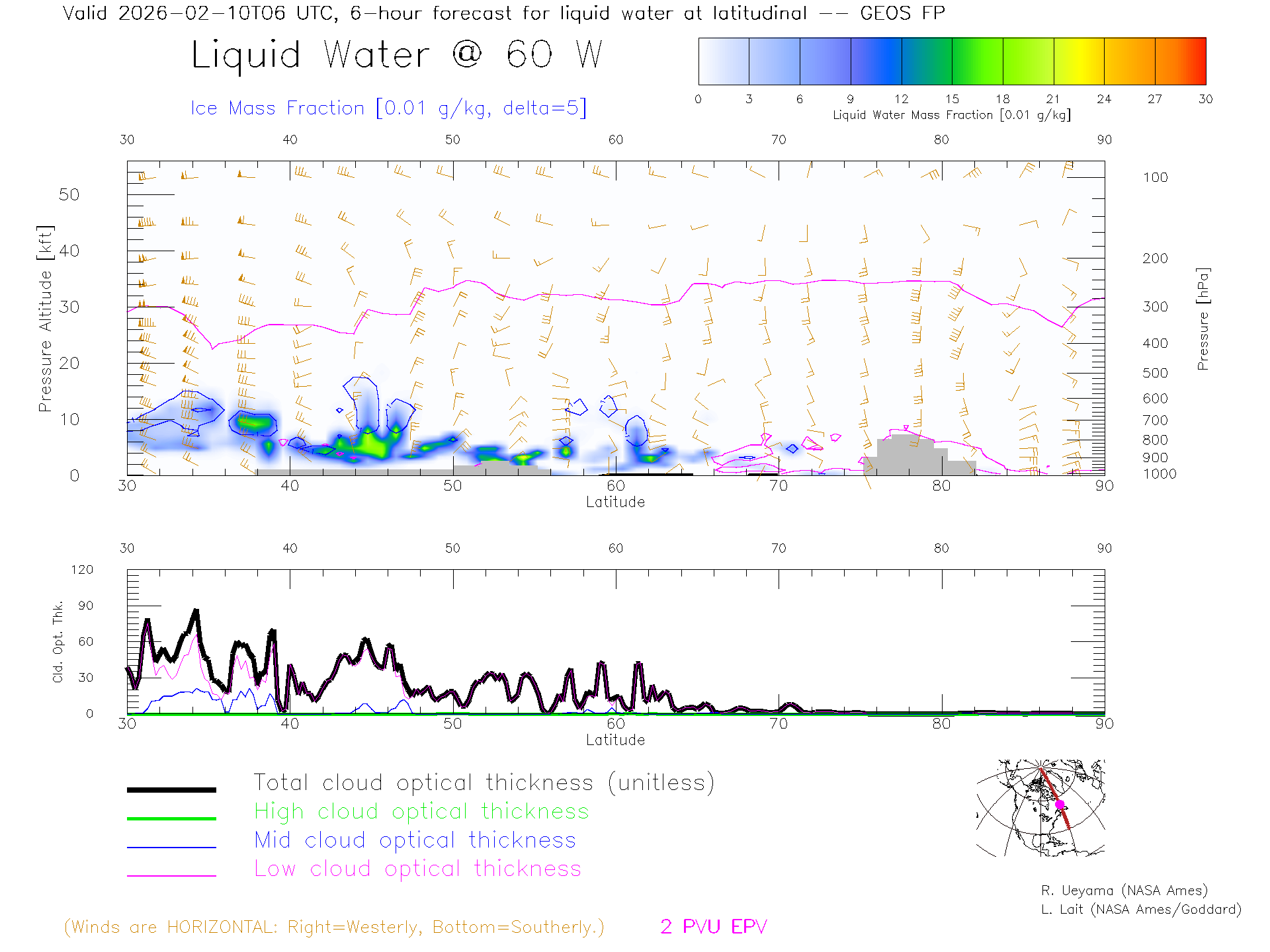 GEOS Forecast Cloud Water Content X-Section (60 W)