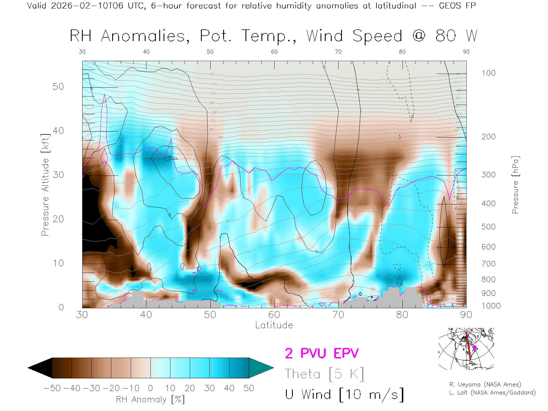 GEOS Forecast Rel. Hum. X-Section (80 W)