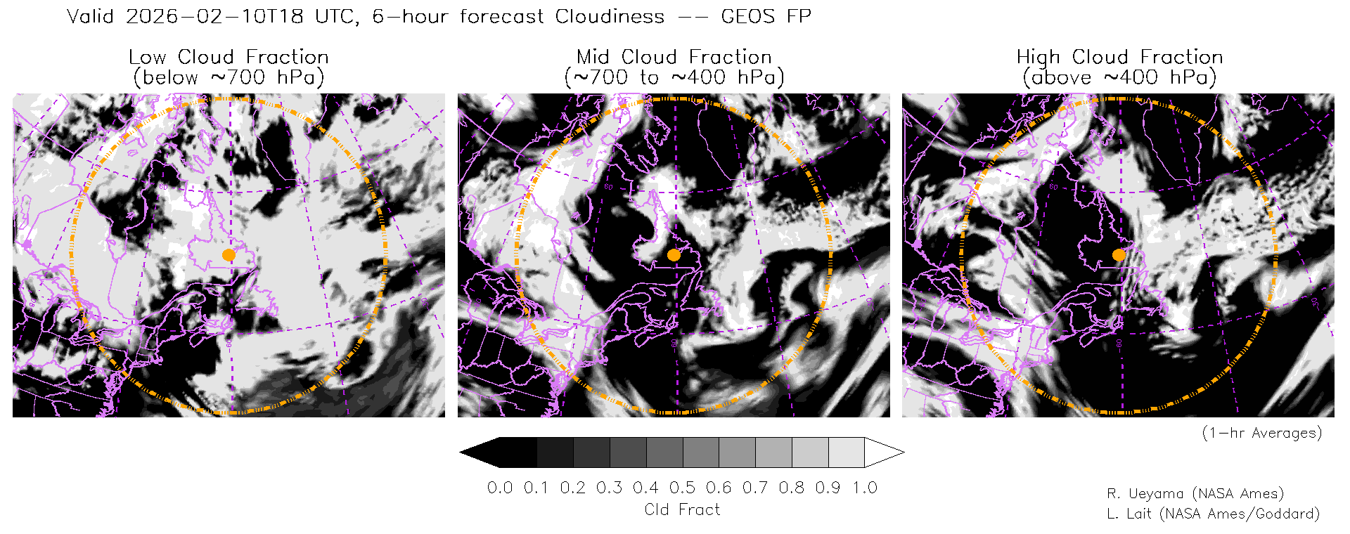 GEOS Forecast Cloud Fraction (High, Mid, Low)