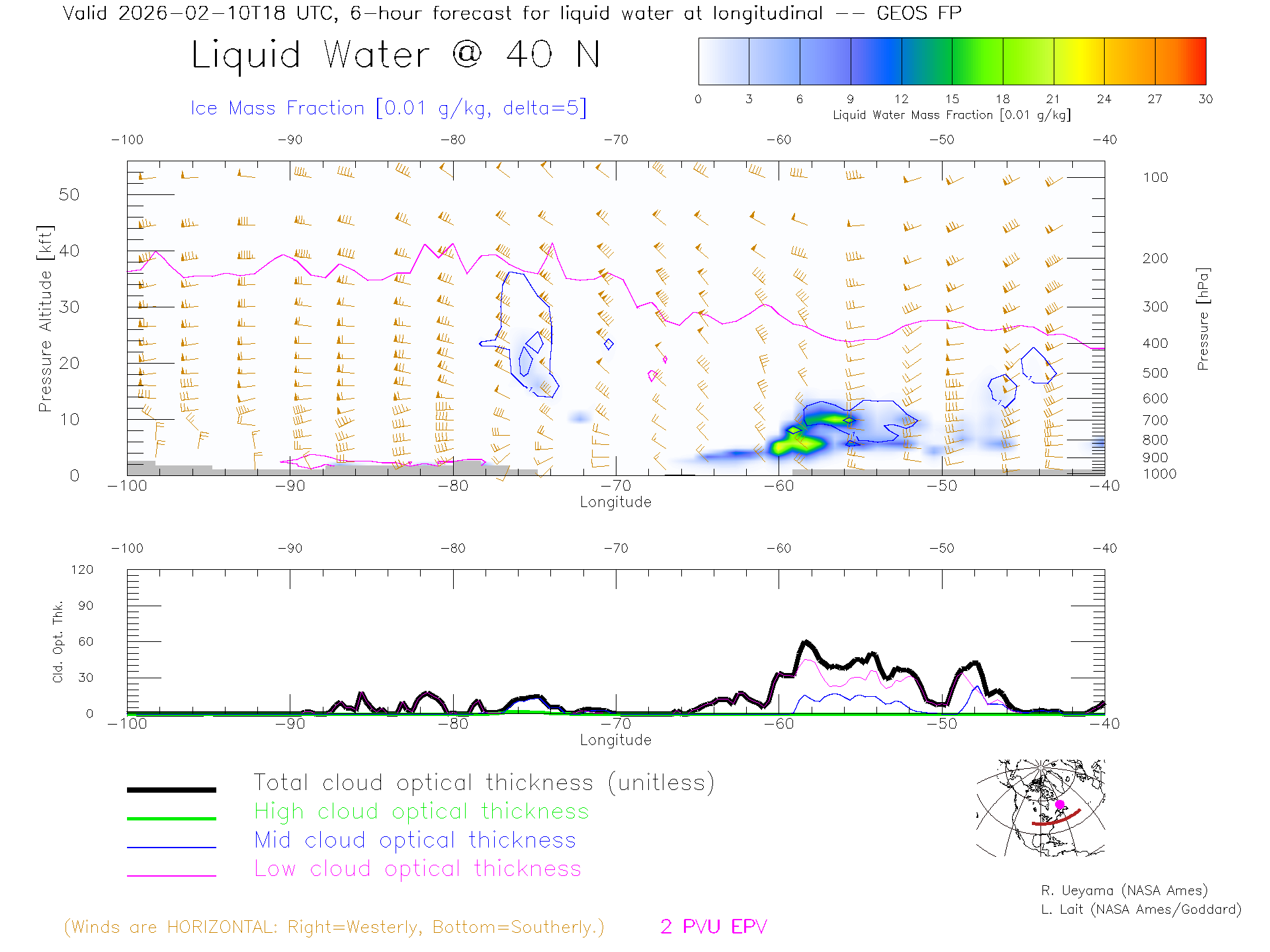 GEOS Forecast Cloud Water Content X-Section (40 N)