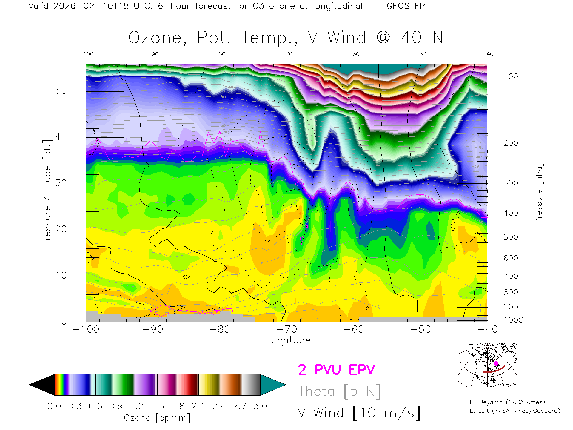 GEOS Forecast Ozone X-Section (40 N)