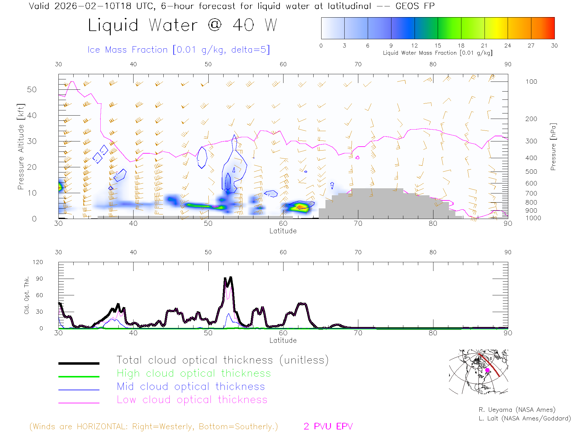 GEOS Forecast Cloud Water Content X-Section (40 W)