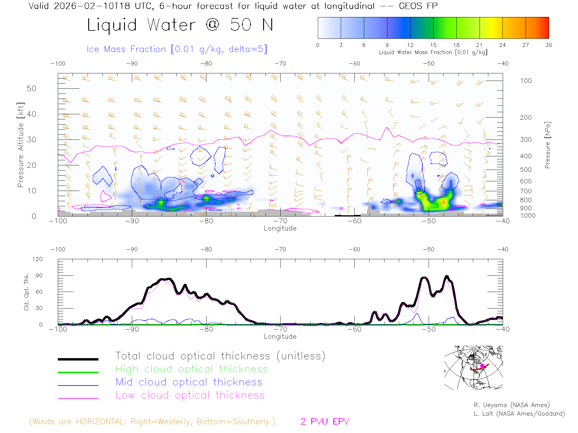 GEOS Forecast Cloud Water Content X-Section (50 N)