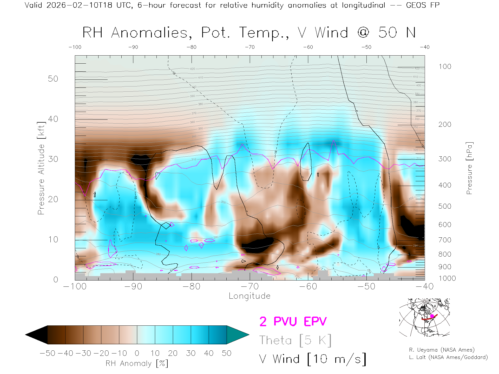 GEOS Forecast Rel. Hum. X-Section (50 N)