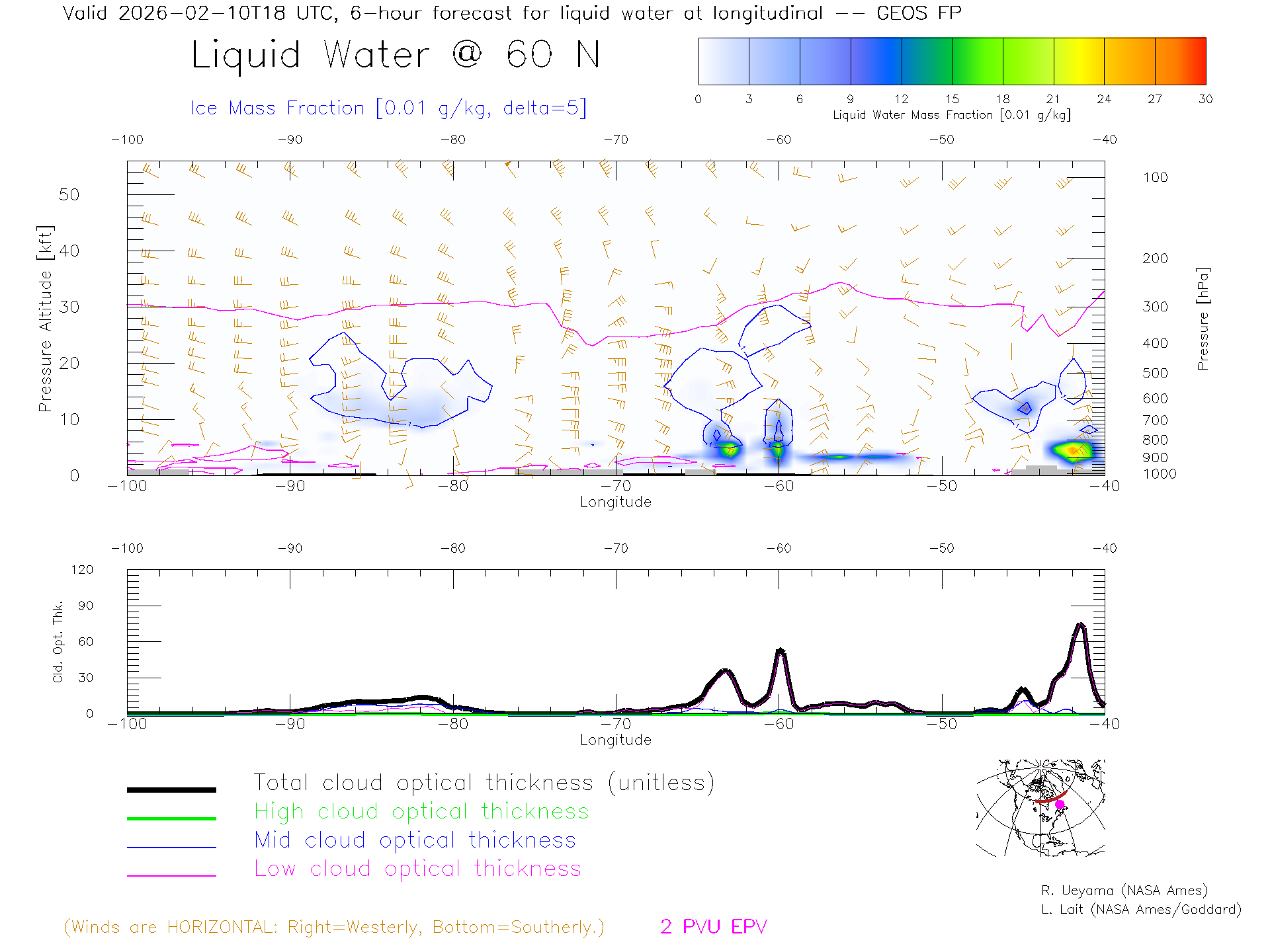 GEOS Forecast Cloud Water Content X-Section (60 N)