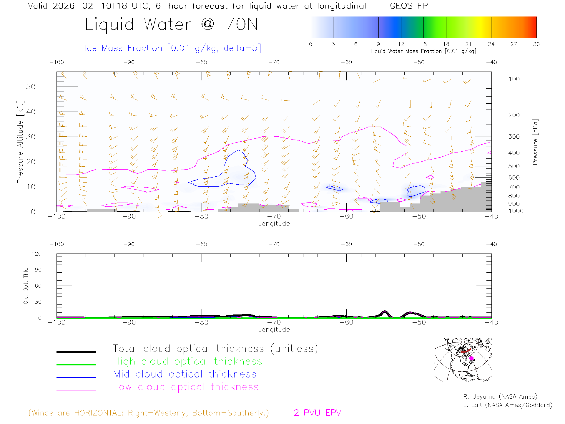 GEOS Forecast Cloud Water Content X-Section (70 N)
