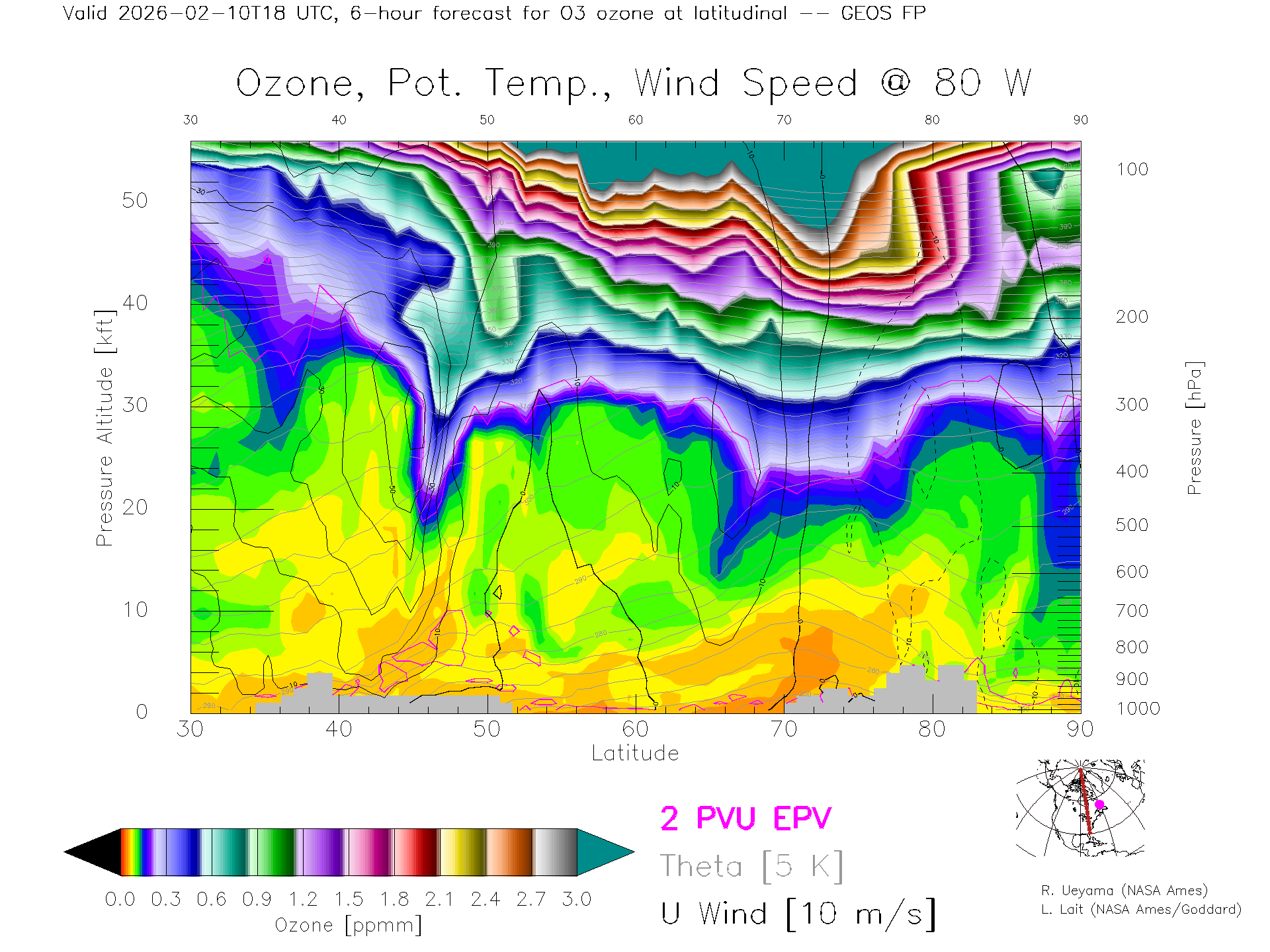 GEOS Forecast Ozone X-Section (80 W)