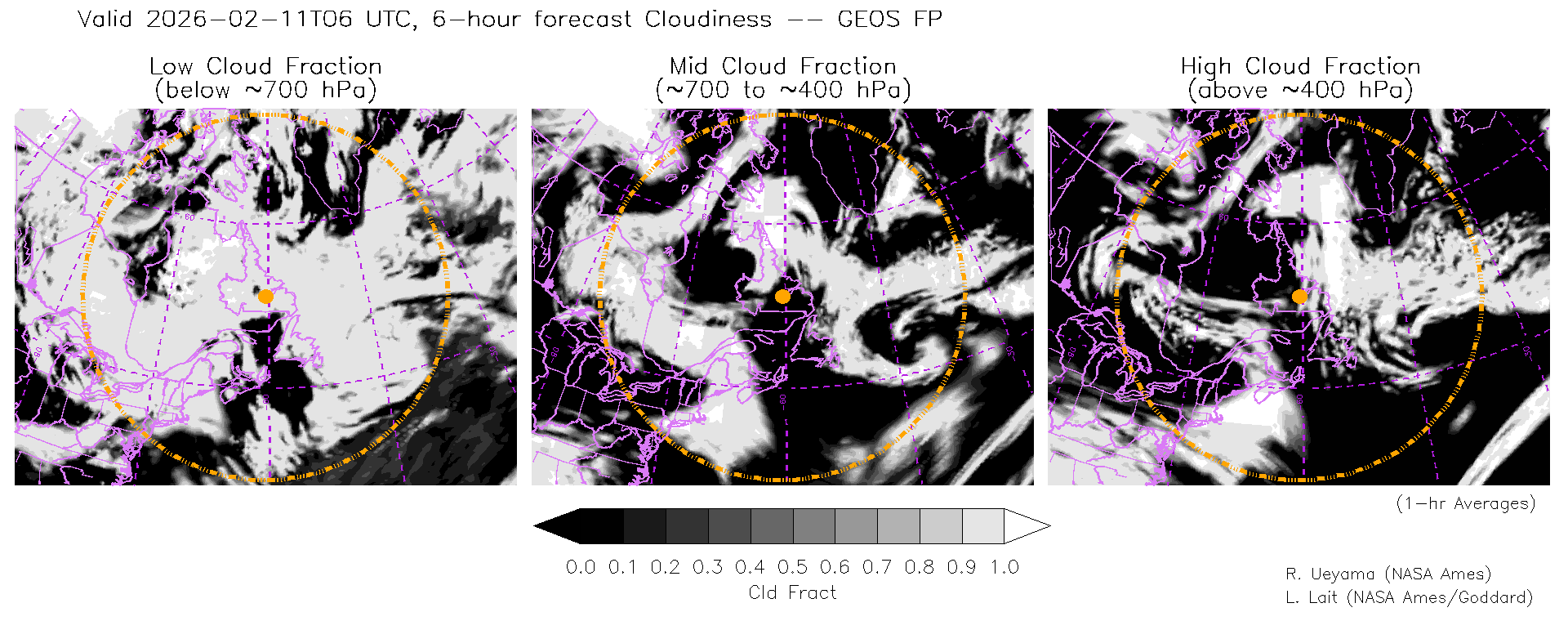 GEOS Forecast Cloud Fraction (High, Mid, Low)