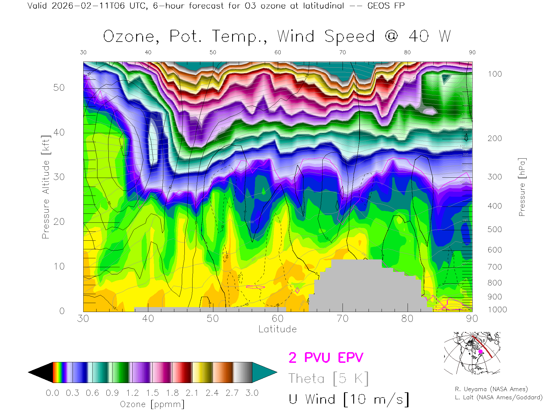 GEOS Forecast Ozone X-Section (40 W)