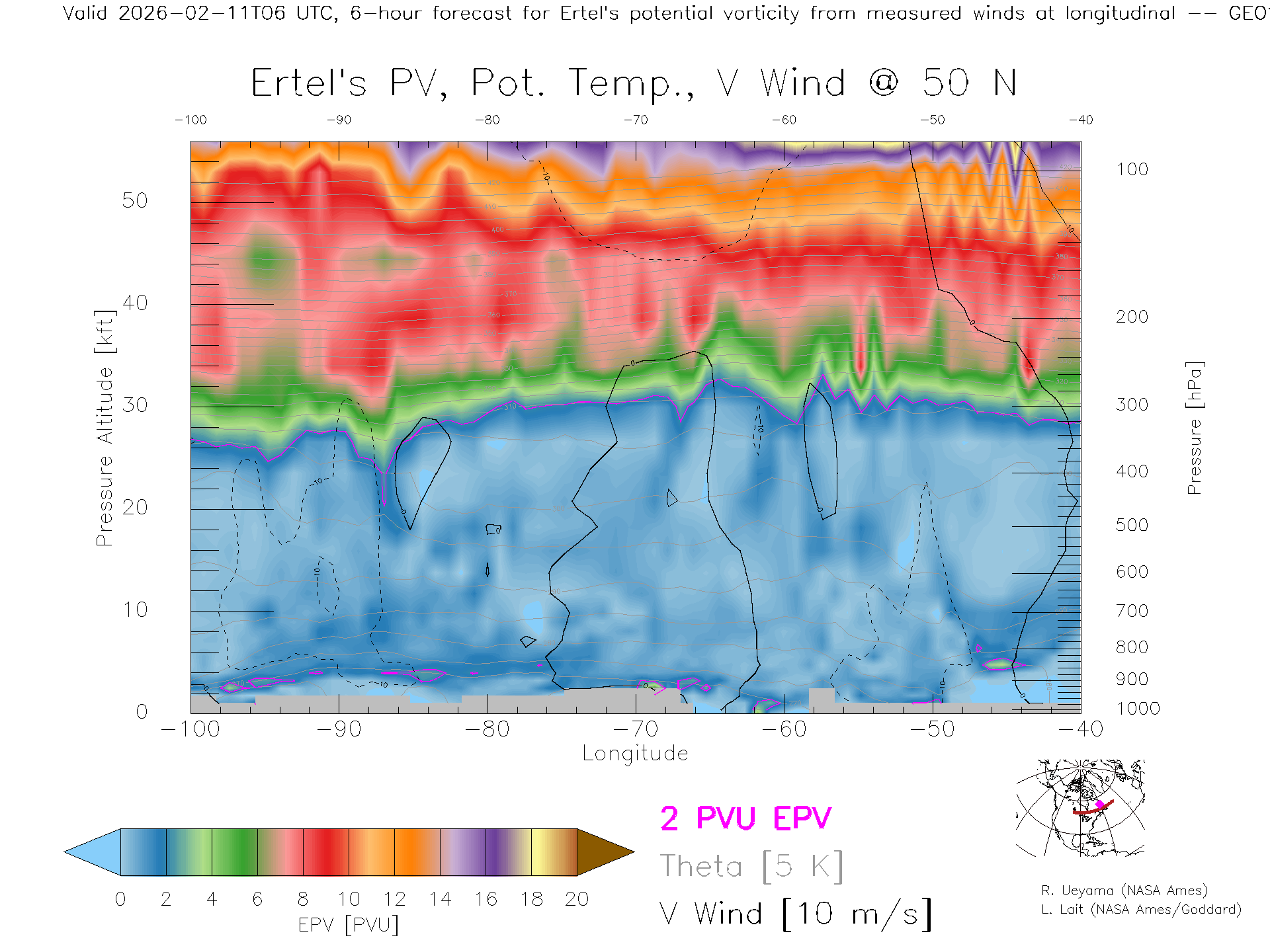 GEOS Forecast PV X-Section (50 N)