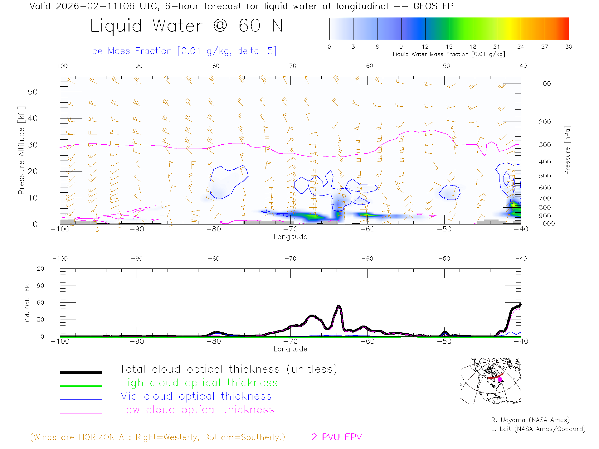 GEOS Forecast Cloud Water Content X-Section (60 N)