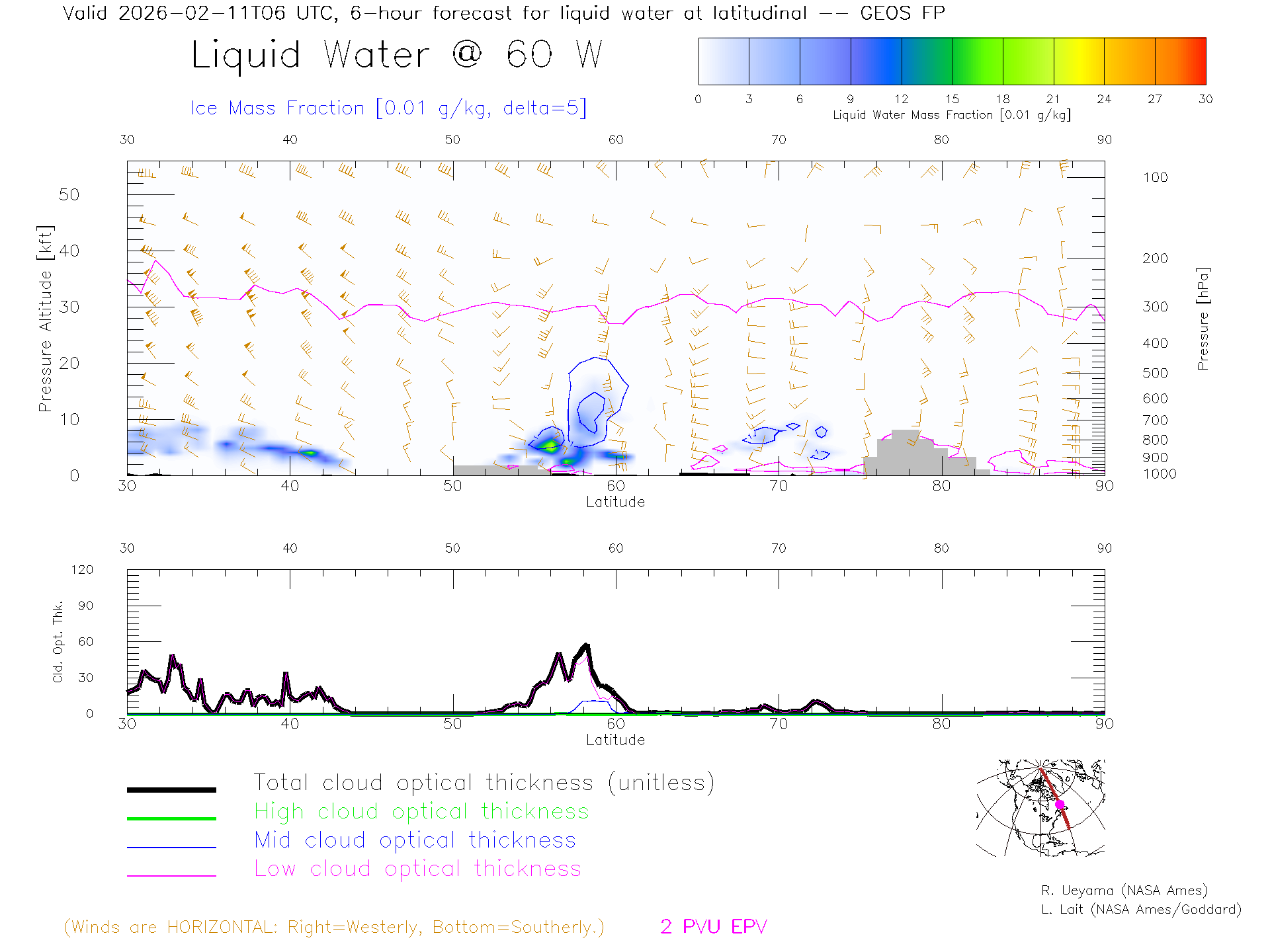 GEOS Forecast Cloud Water Content X-Section (60 W)