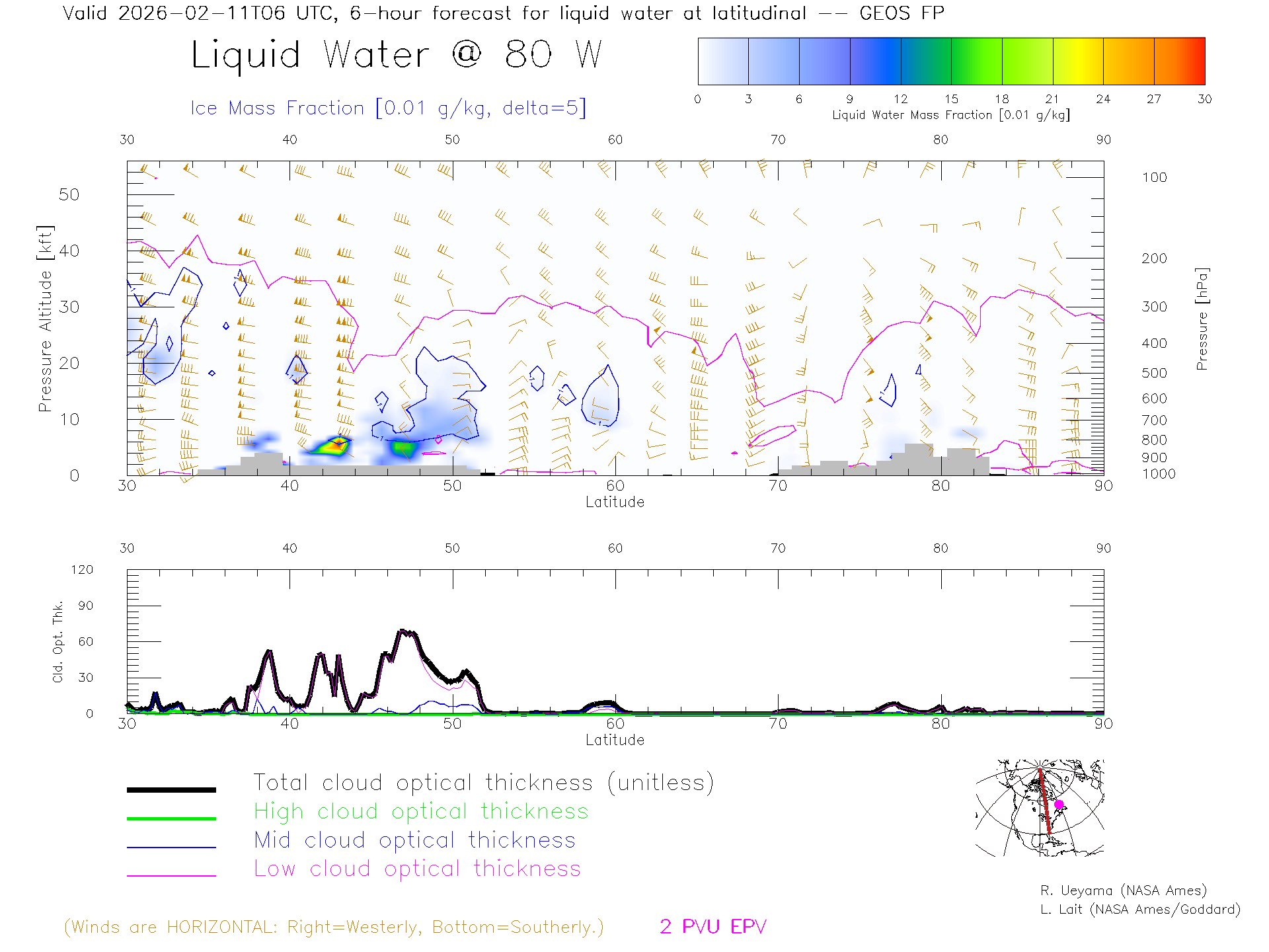 GEOS Forecast Cloud Water Content X-Section (80 W)