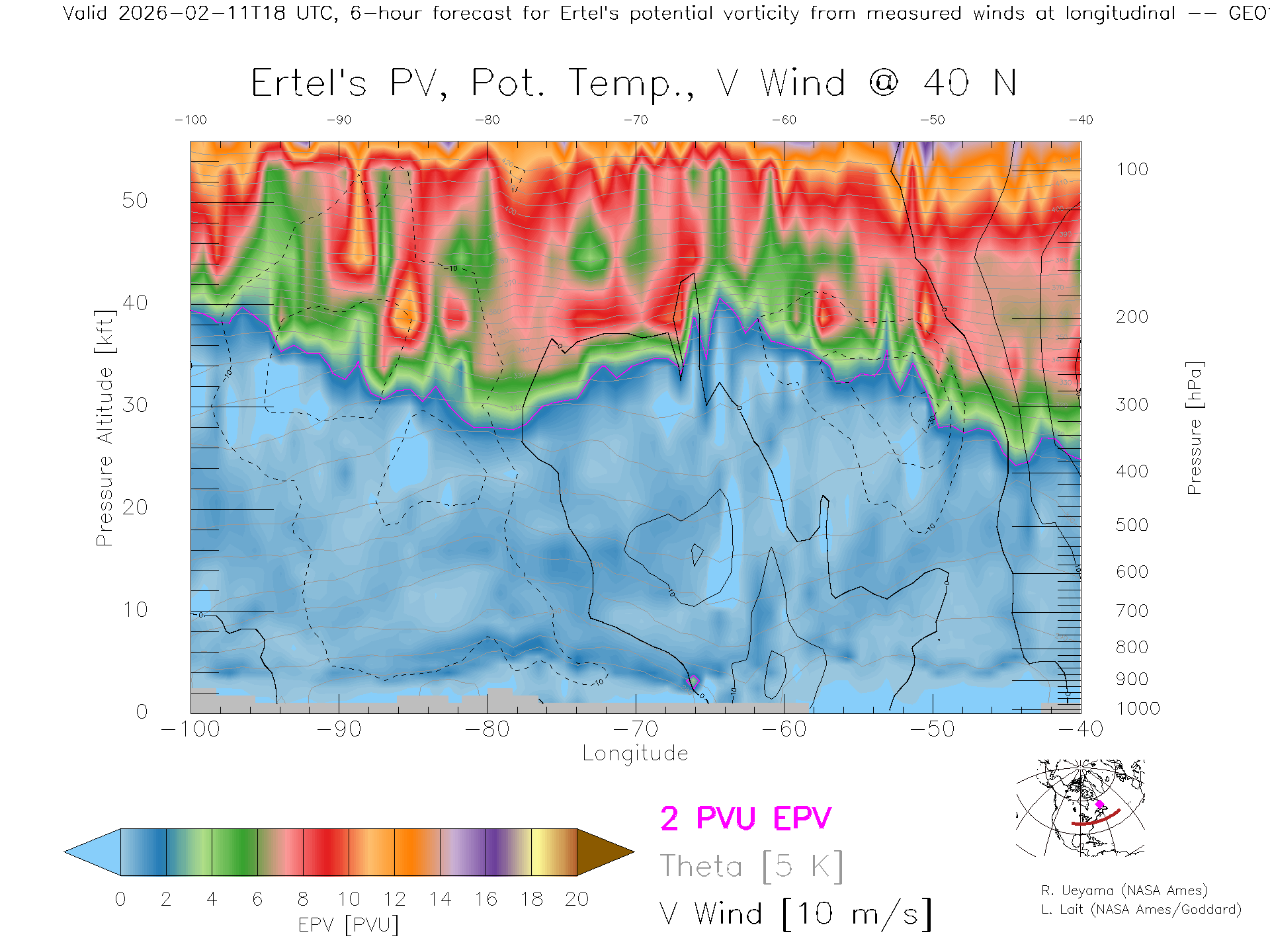 GEOS Forecast PV X-Section (40 N)