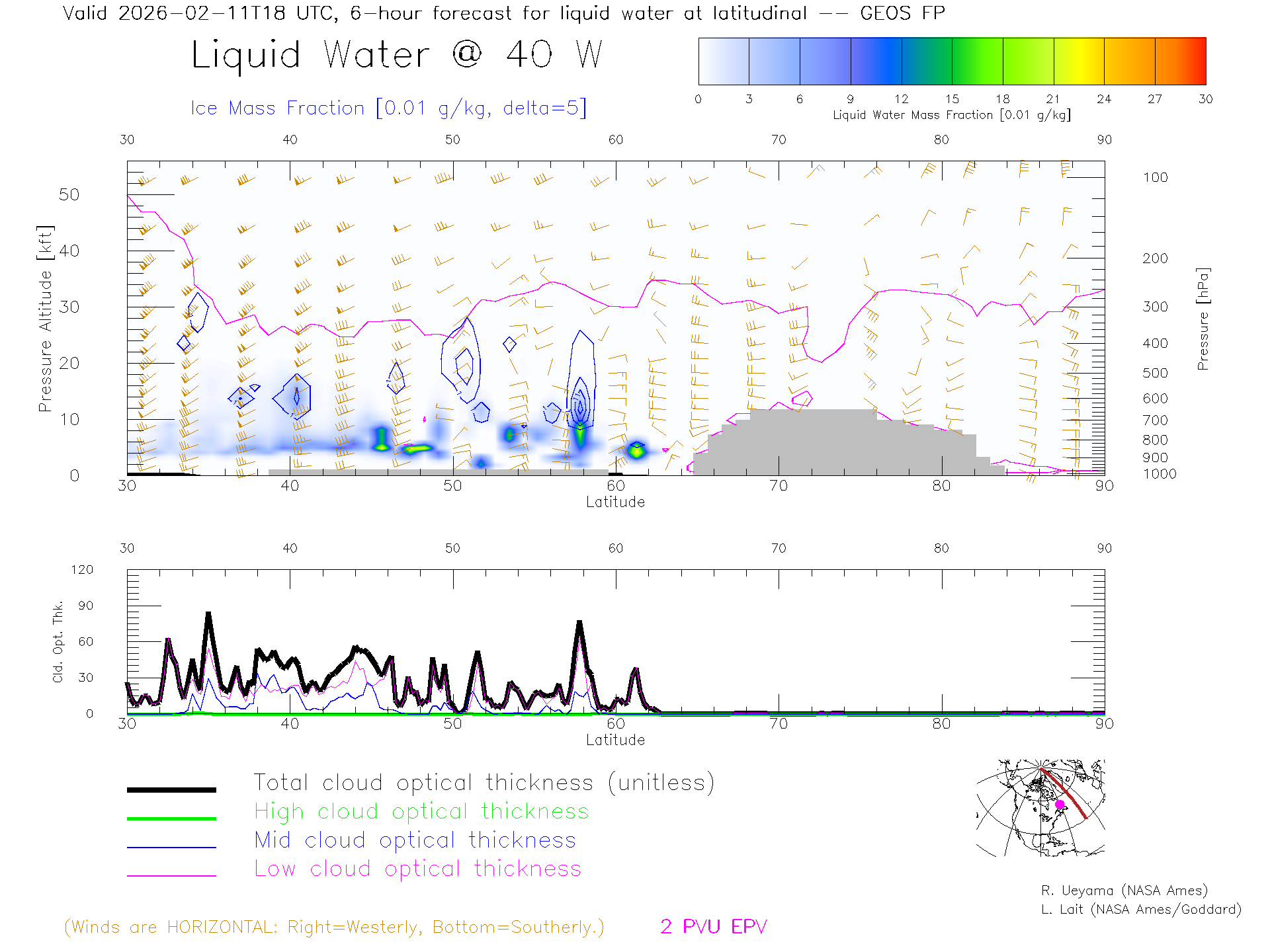 GEOS Forecast Cloud Water Content X-Section (40 W)