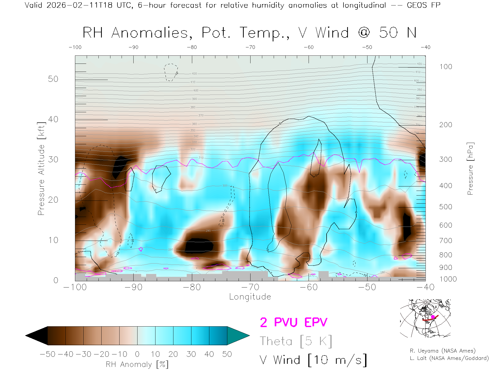 GEOS Forecast Rel. Hum. X-Section (50 N)