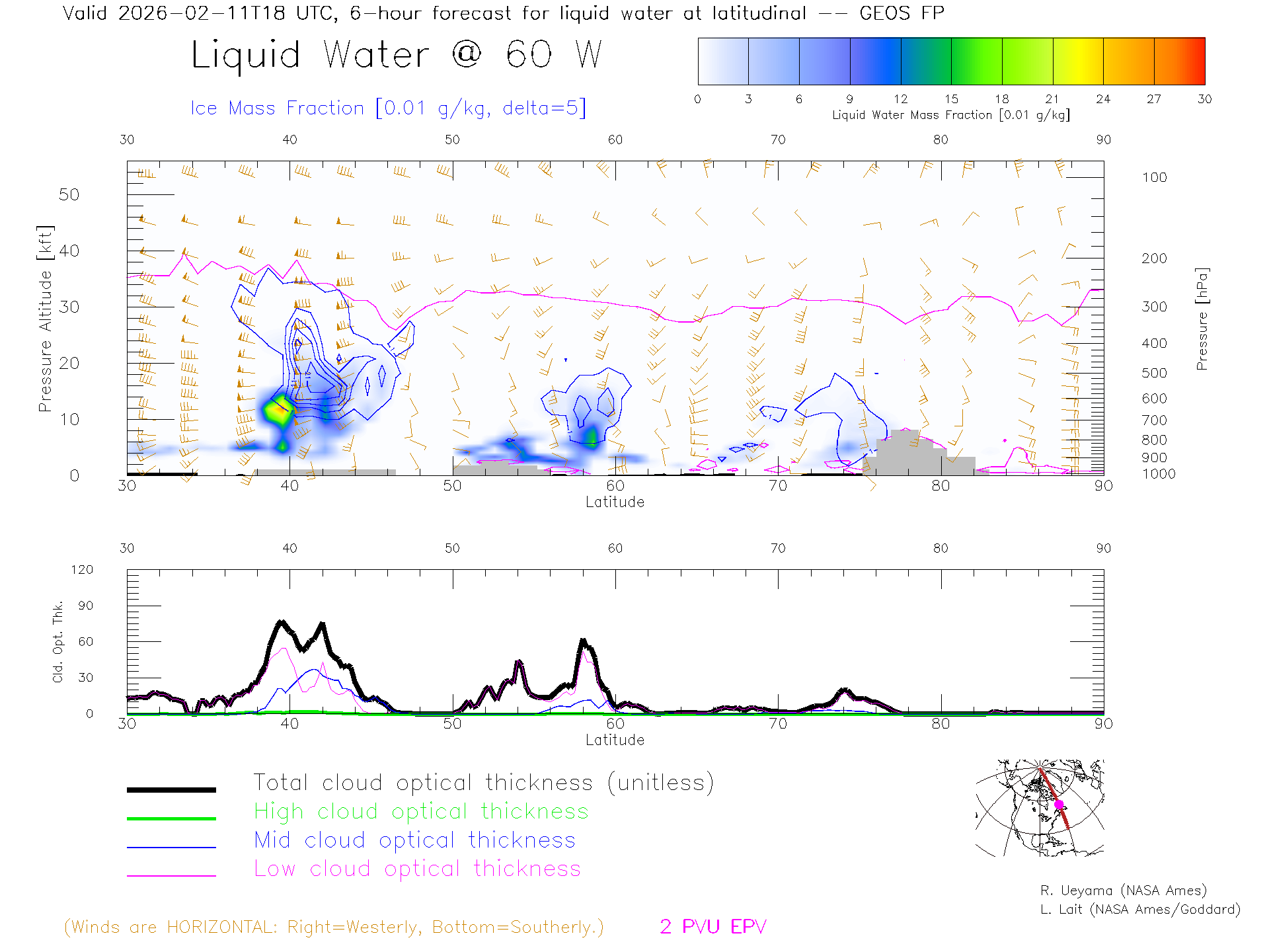 GEOS Forecast Cloud Water Content X-Section (60 W)
