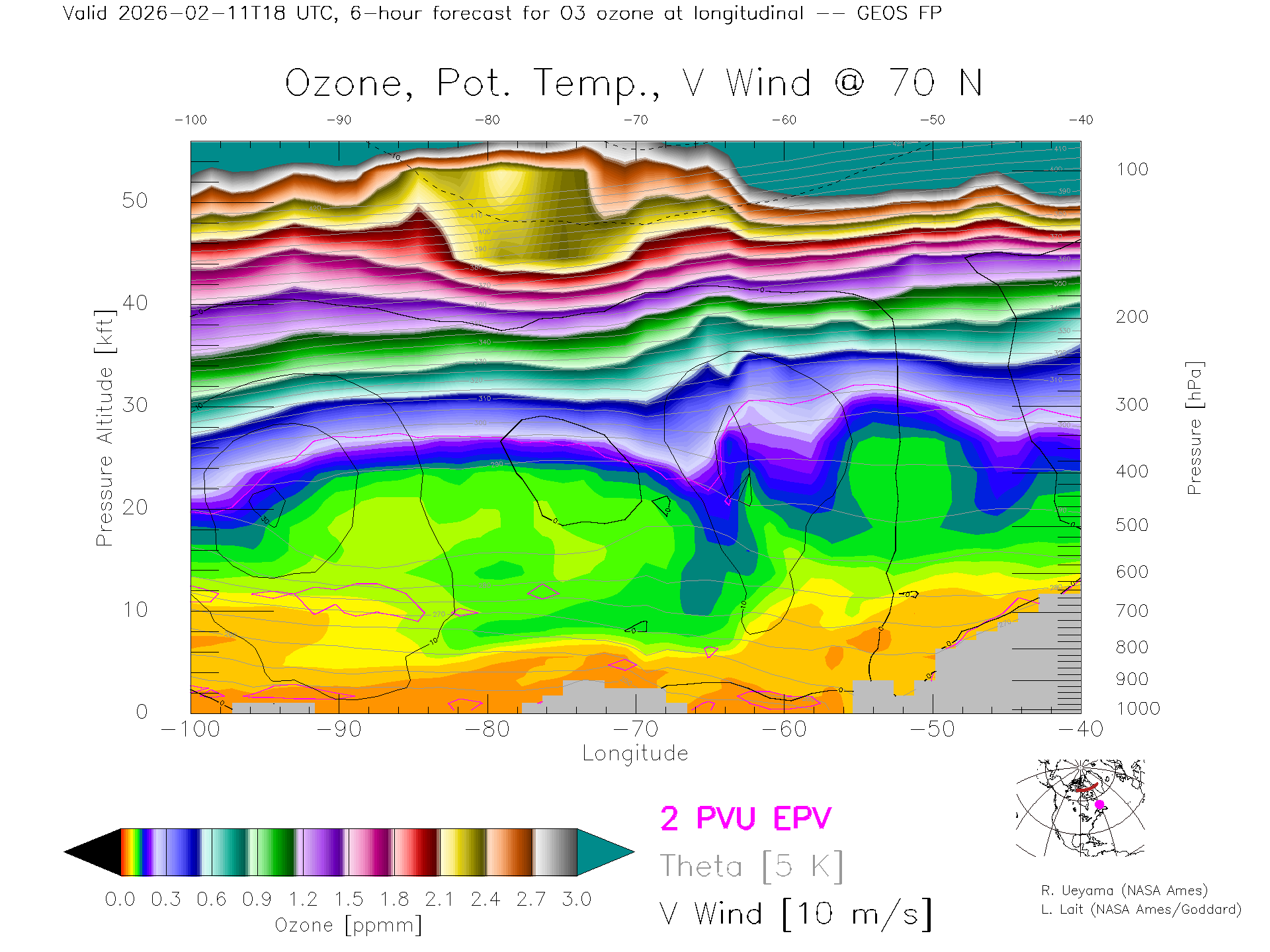 GEOS Forecast Ozone X-Section (70 N)