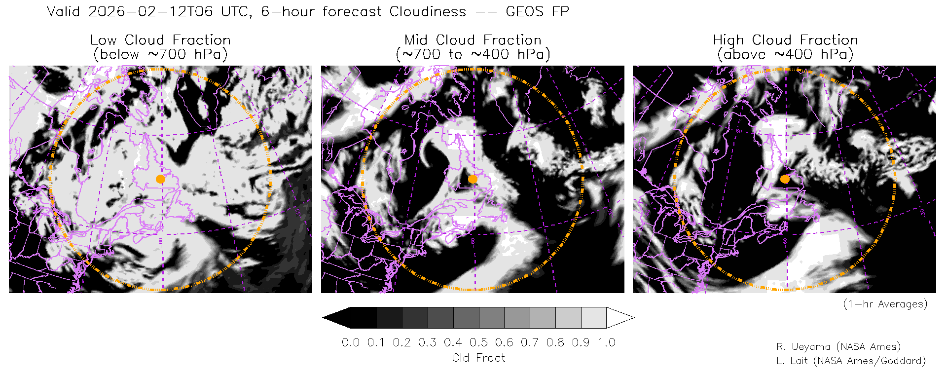 GEOS Forecast Cloud Fraction (High, Mid, Low)