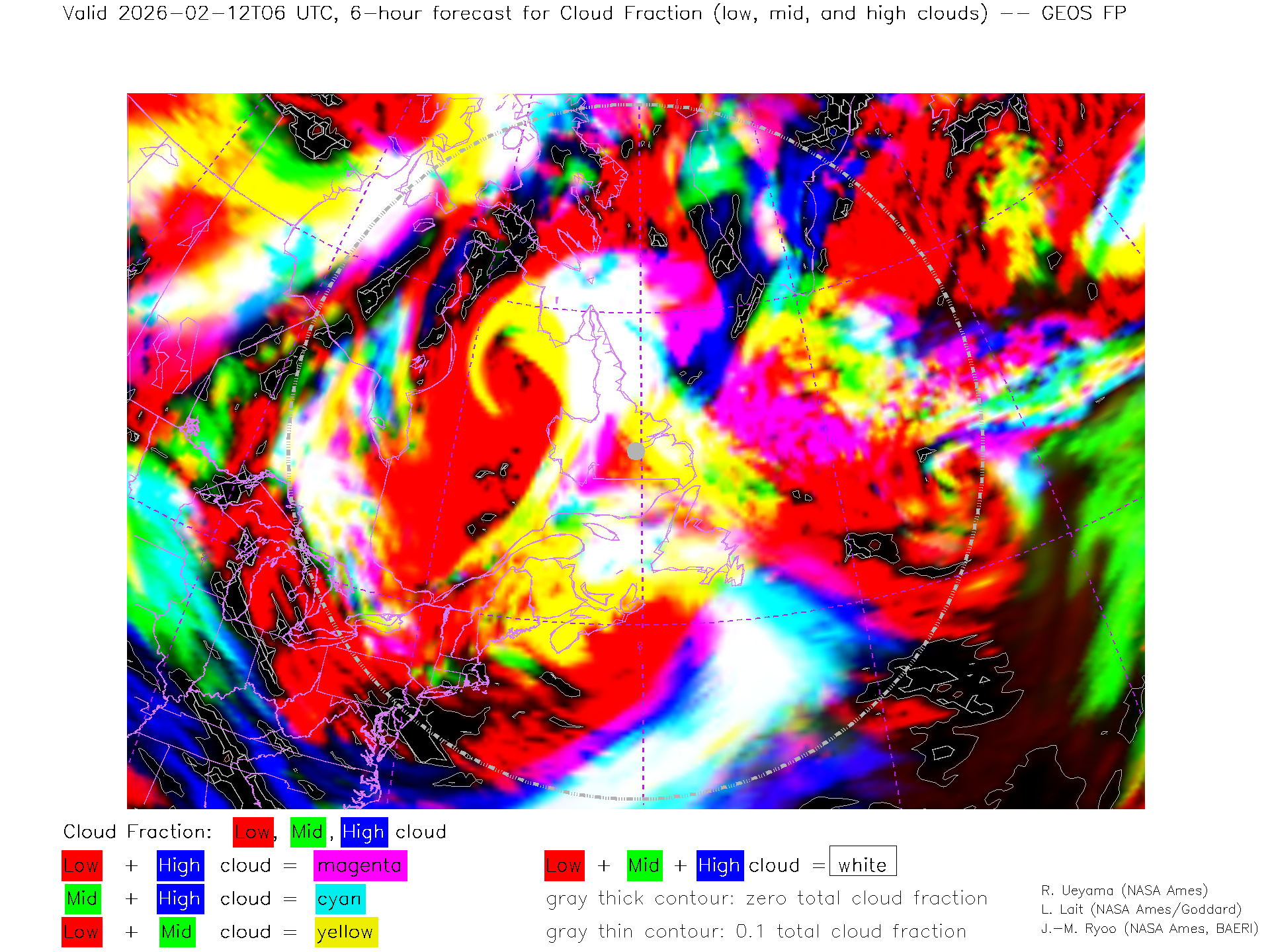 GEOS Forecast Low-, Mid- and High-level Cloud Fraction
