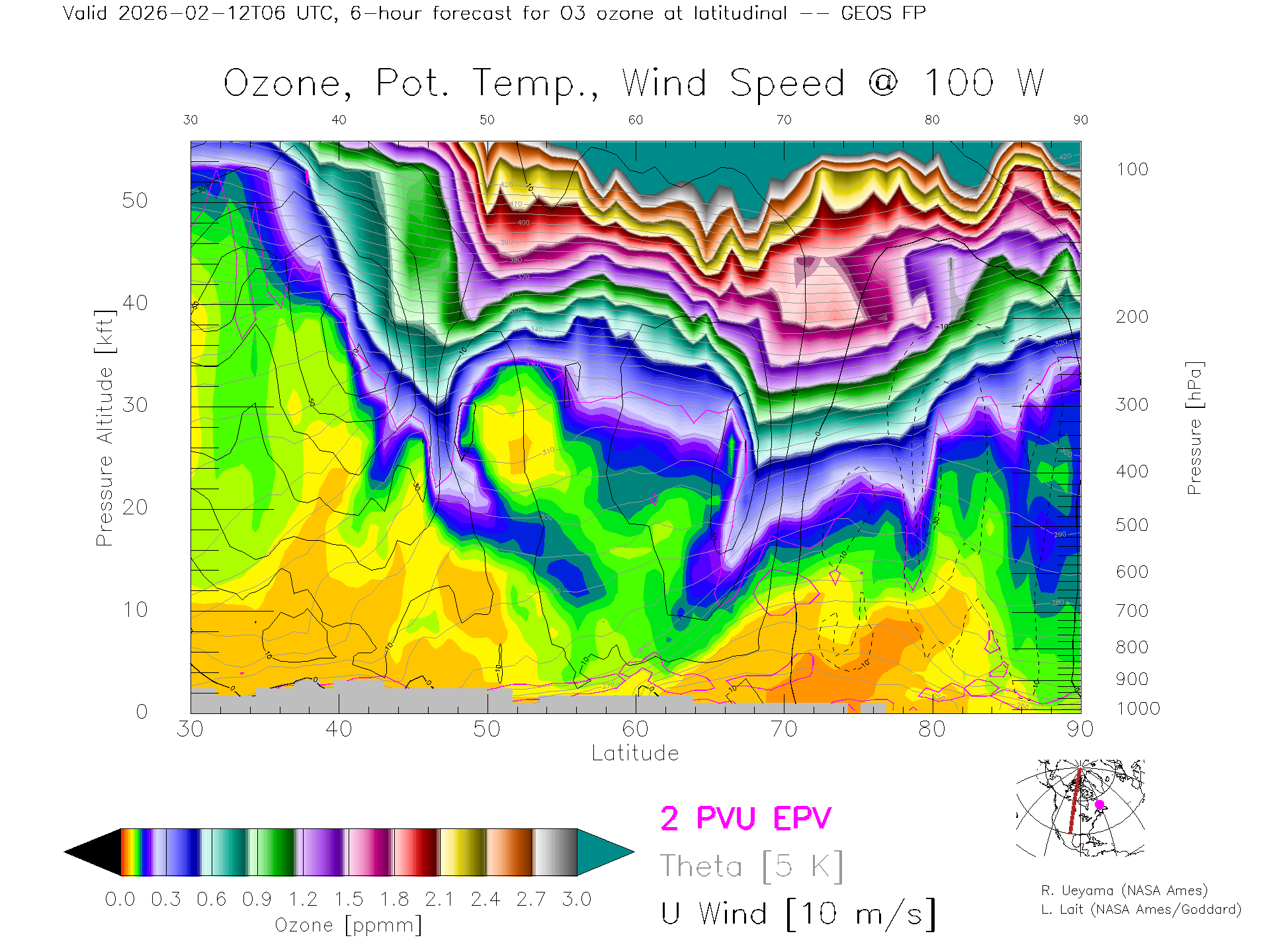 GEOS Forecast Ozone X-Section (100 W)