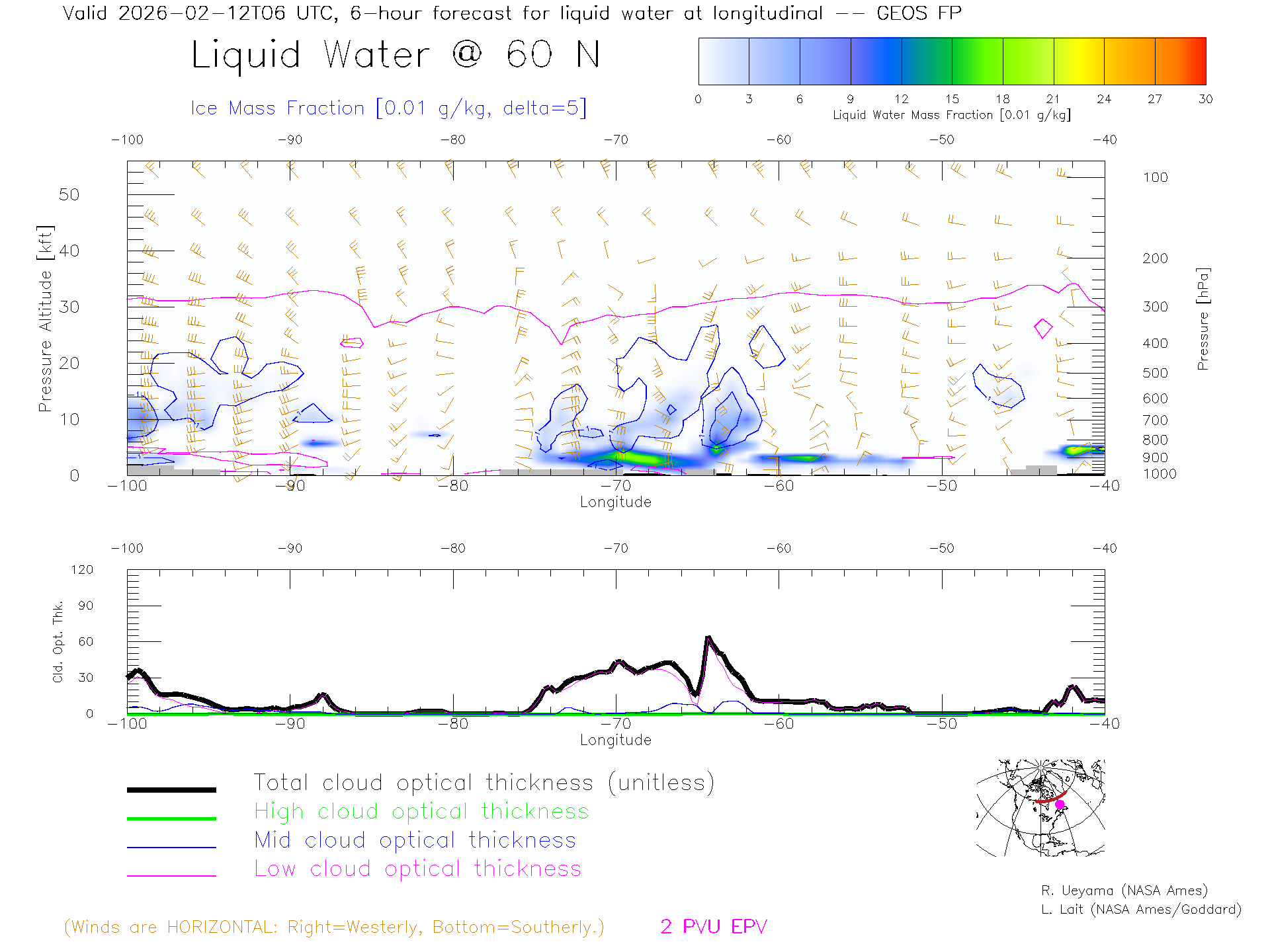 GEOS Forecast Cloud Water Content X-Section (60 N)