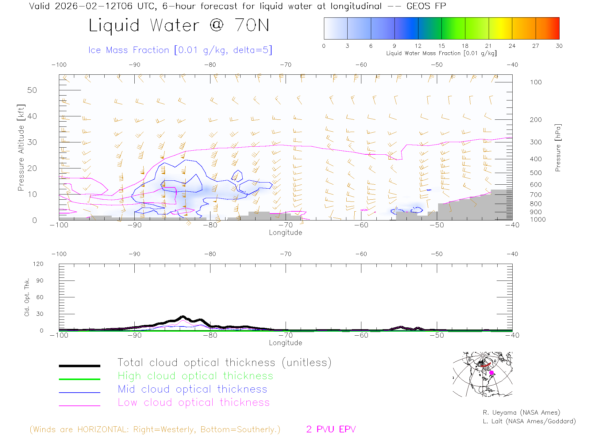 GEOS Forecast Cloud Water Content X-Section (70 N)