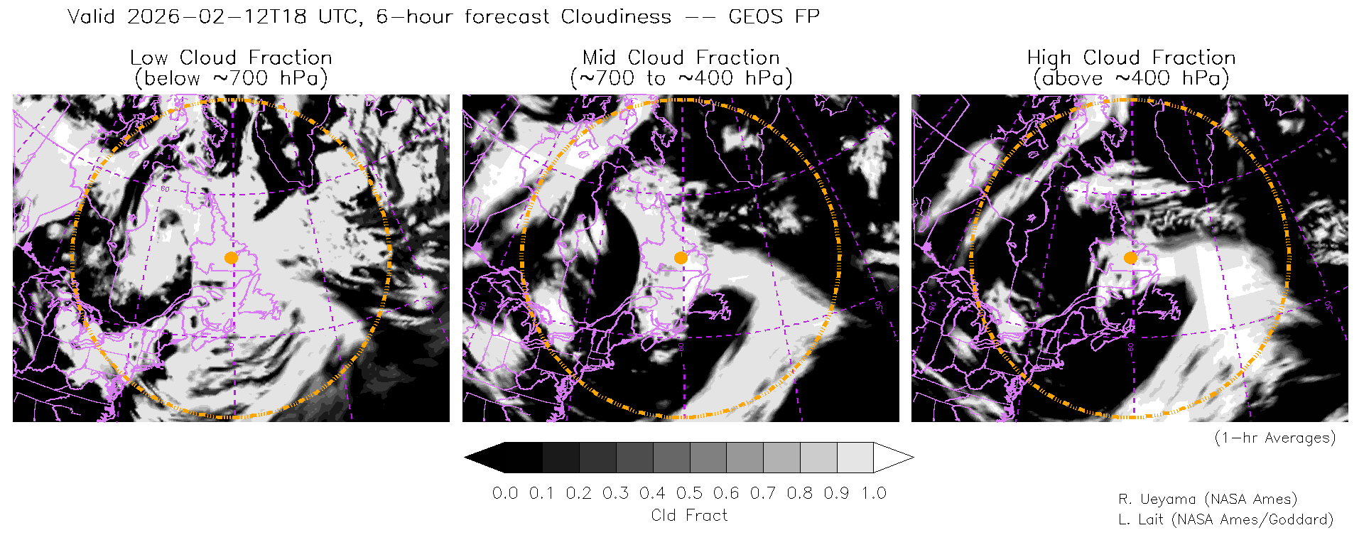 GEOS Forecast Cloud Fraction (High, Mid, Low)