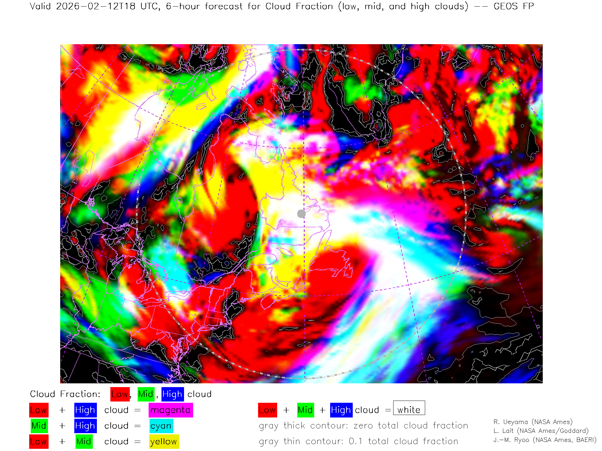 GEOS Forecast Low-, Mid- and High-level Cloud Fraction