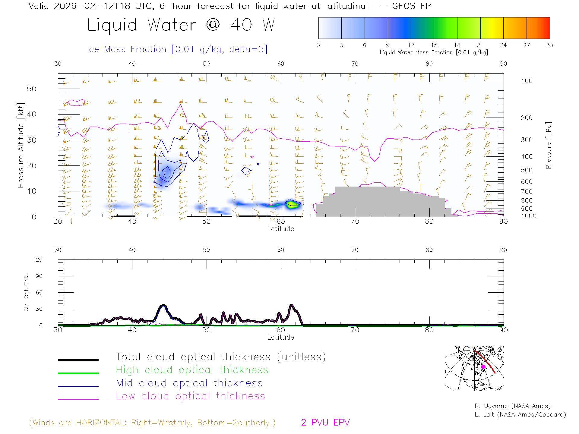GEOS Forecast Cloud Water Content X-Section (40 W)