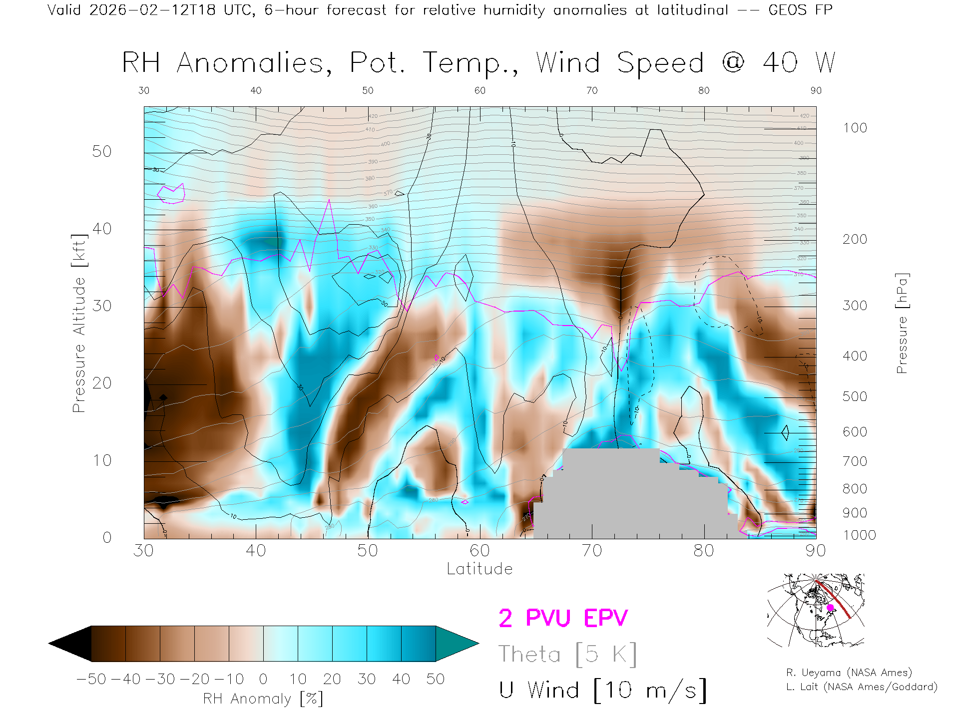 GEOS Forecast Rel. Hum. X-Section (40 W)