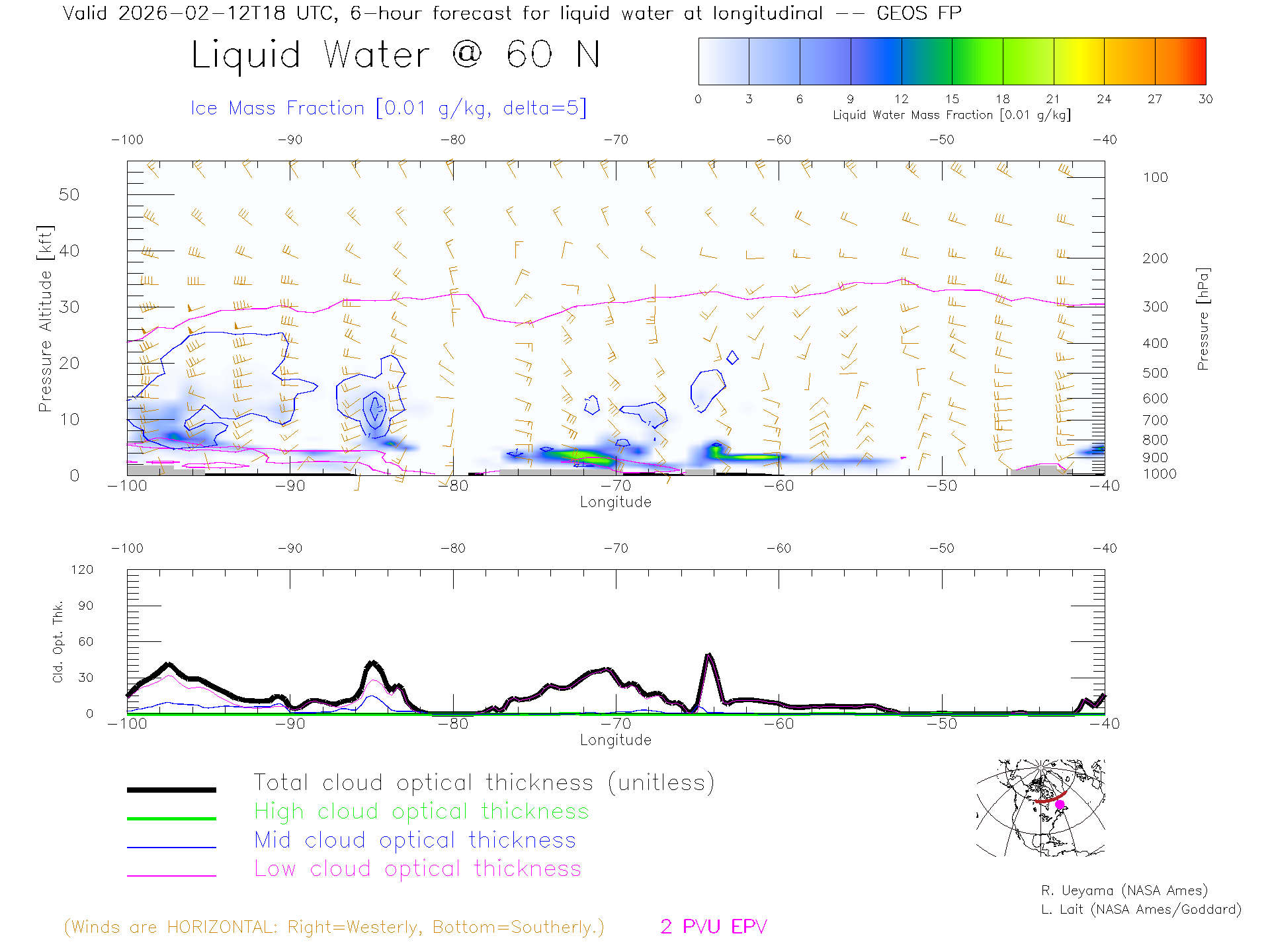 GEOS Forecast Cloud Water Content X-Section (60 N)