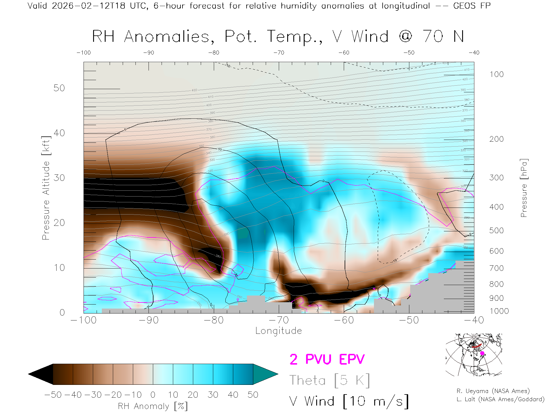 GEOS Forecast Rel. Hum. X-Section (70 N)