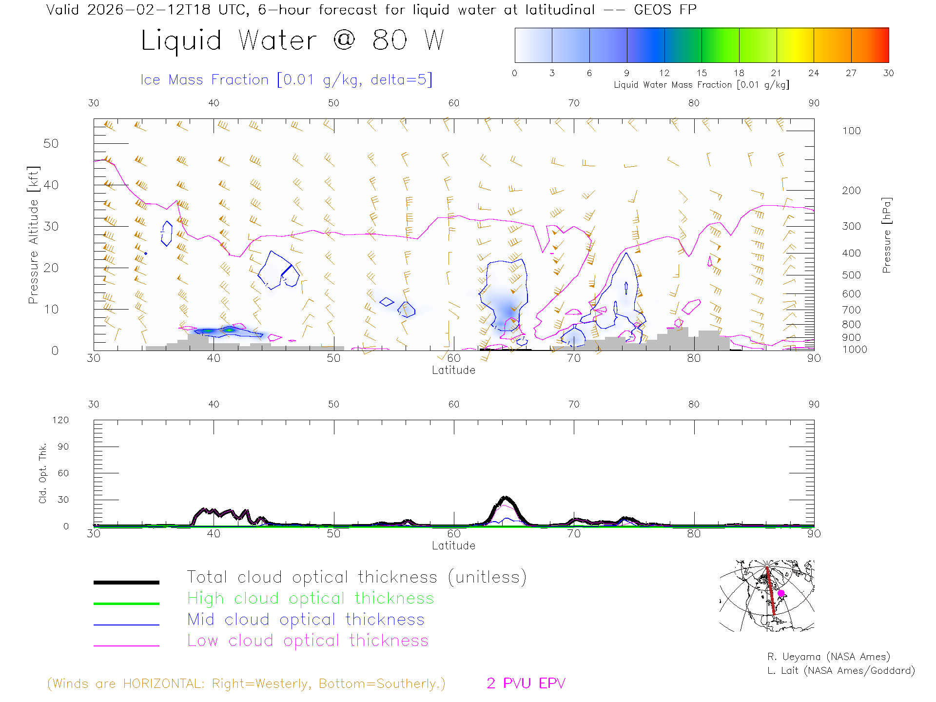 GEOS Forecast Cloud Water Content X-Section (80 W)