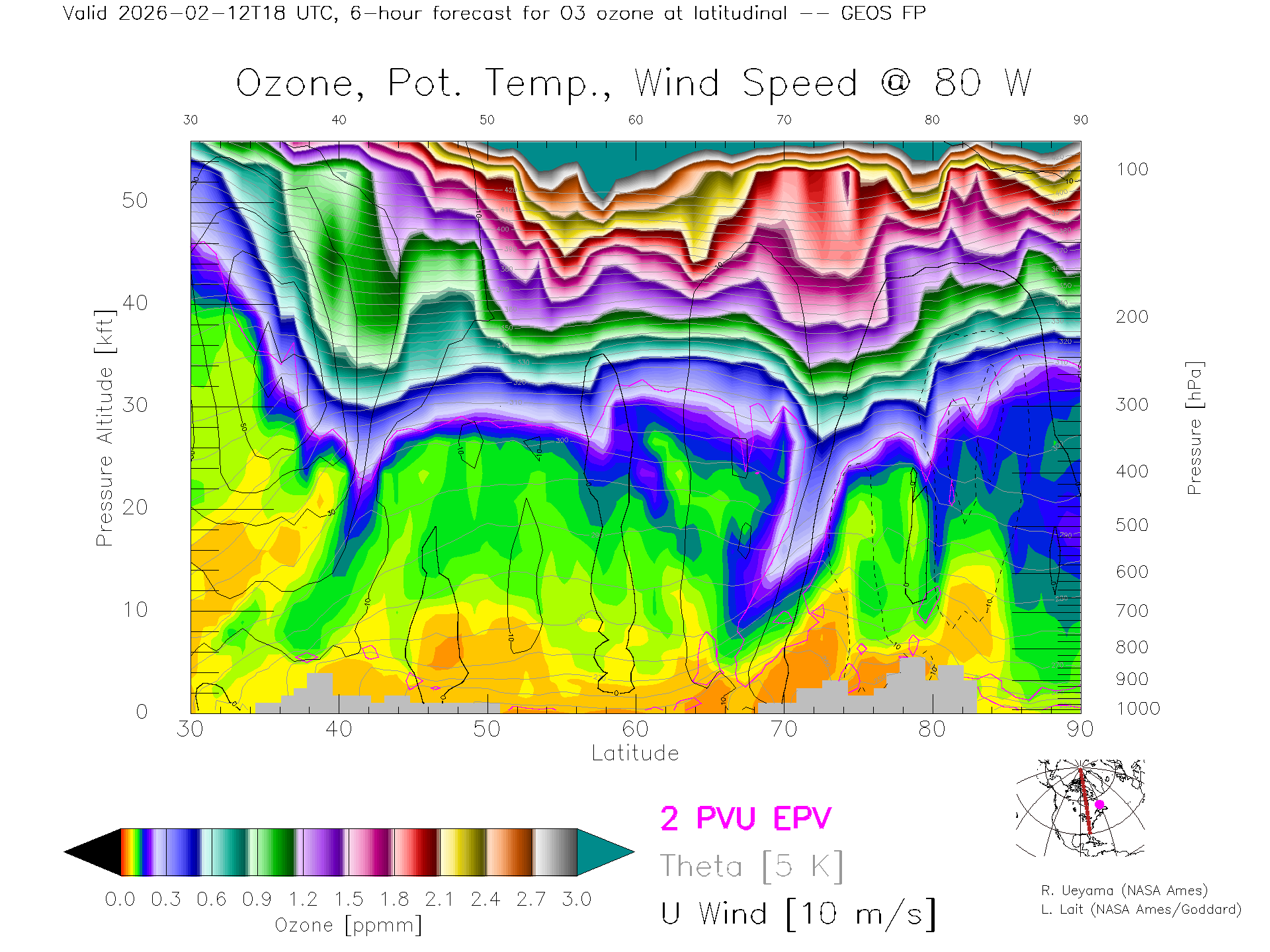 GEOS Forecast Ozone X-Section (80 W)