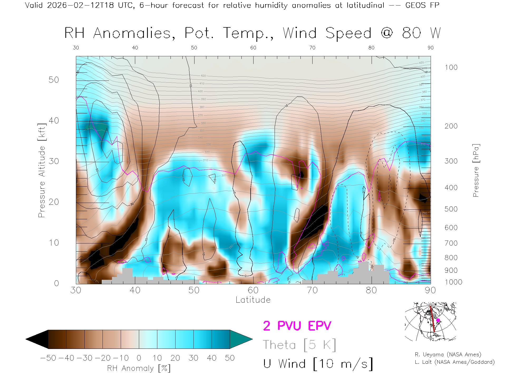 GEOS Forecast Rel. Hum. X-Section (80 W)
