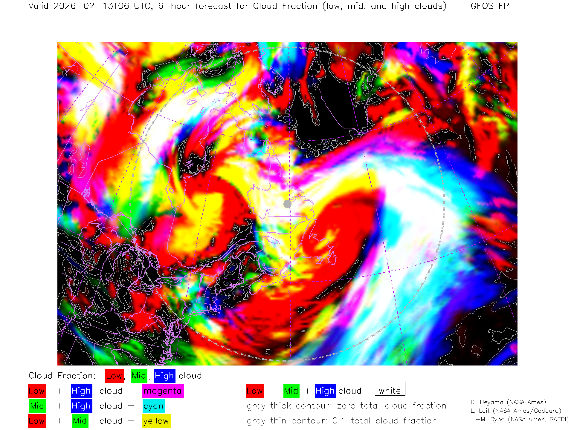 GEOS Forecast Low-, Mid- and High-level Cloud Fraction