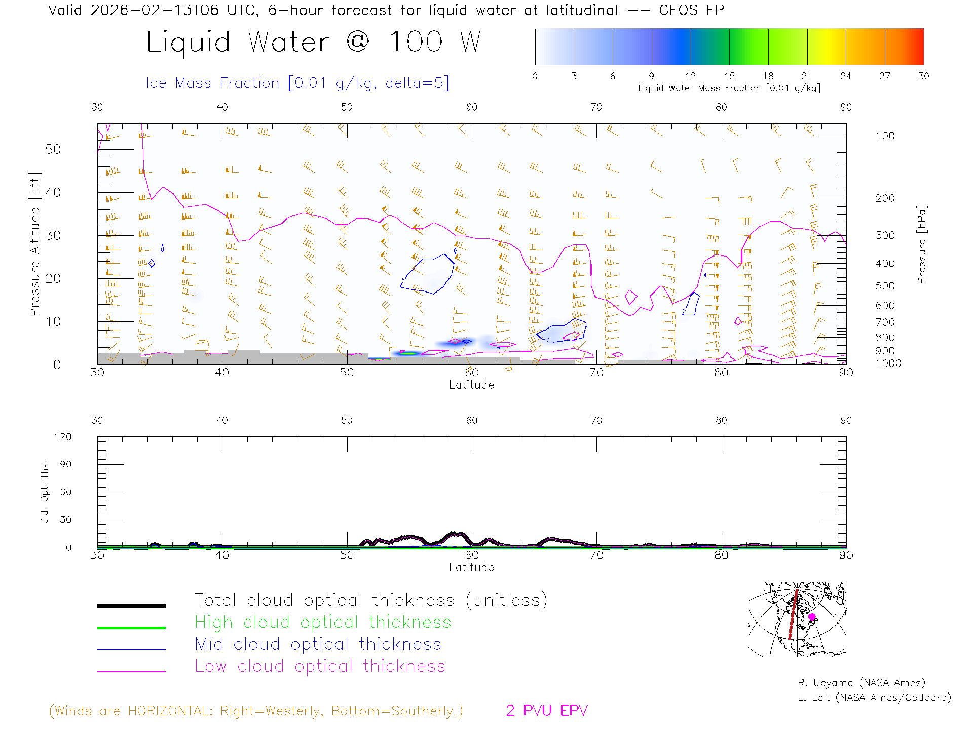 GEOS Forecast Cloud Water Content X-Section (100 W)