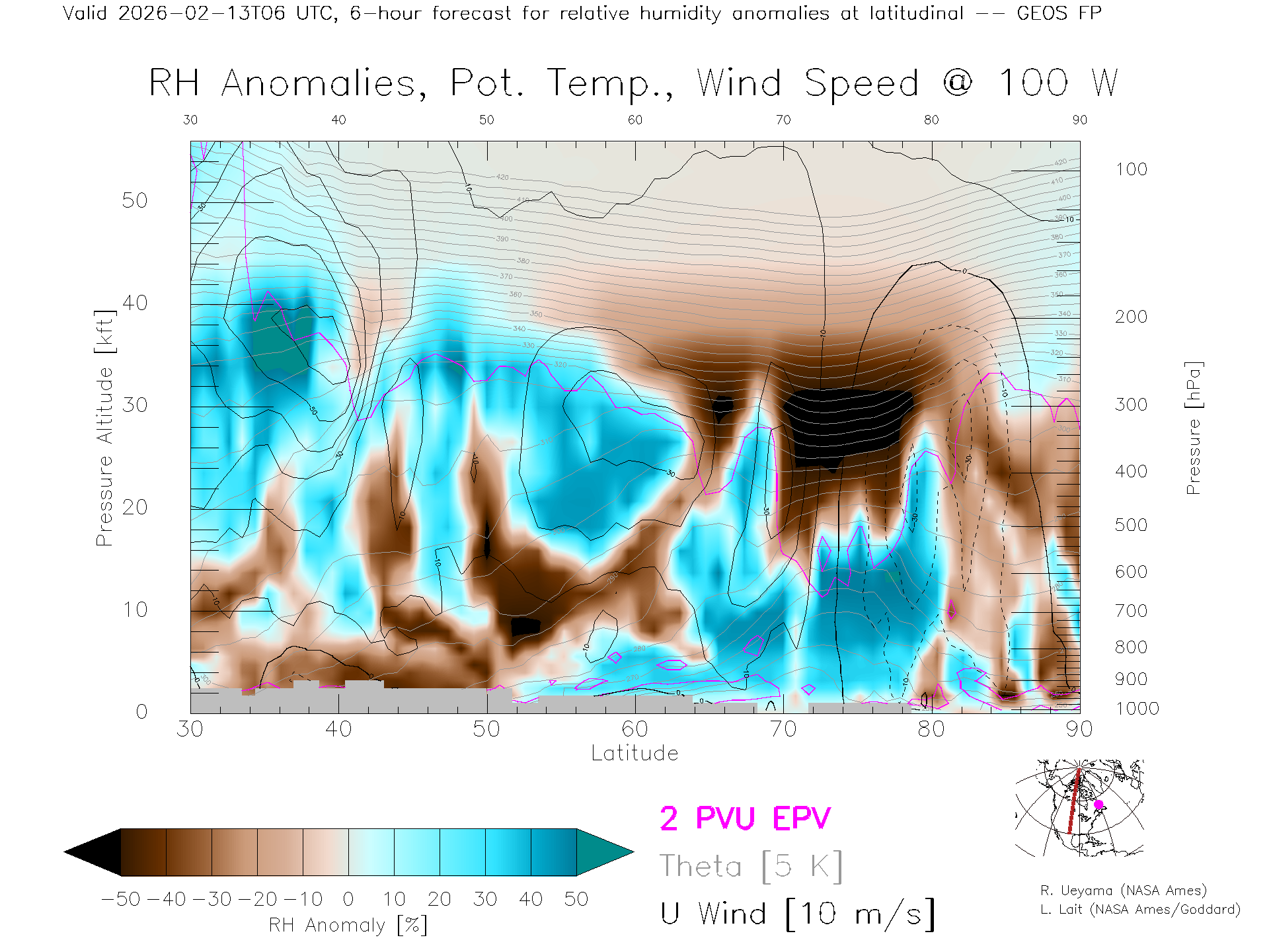 GEOS Forecast Rel. Hum. X-Section (100 W)