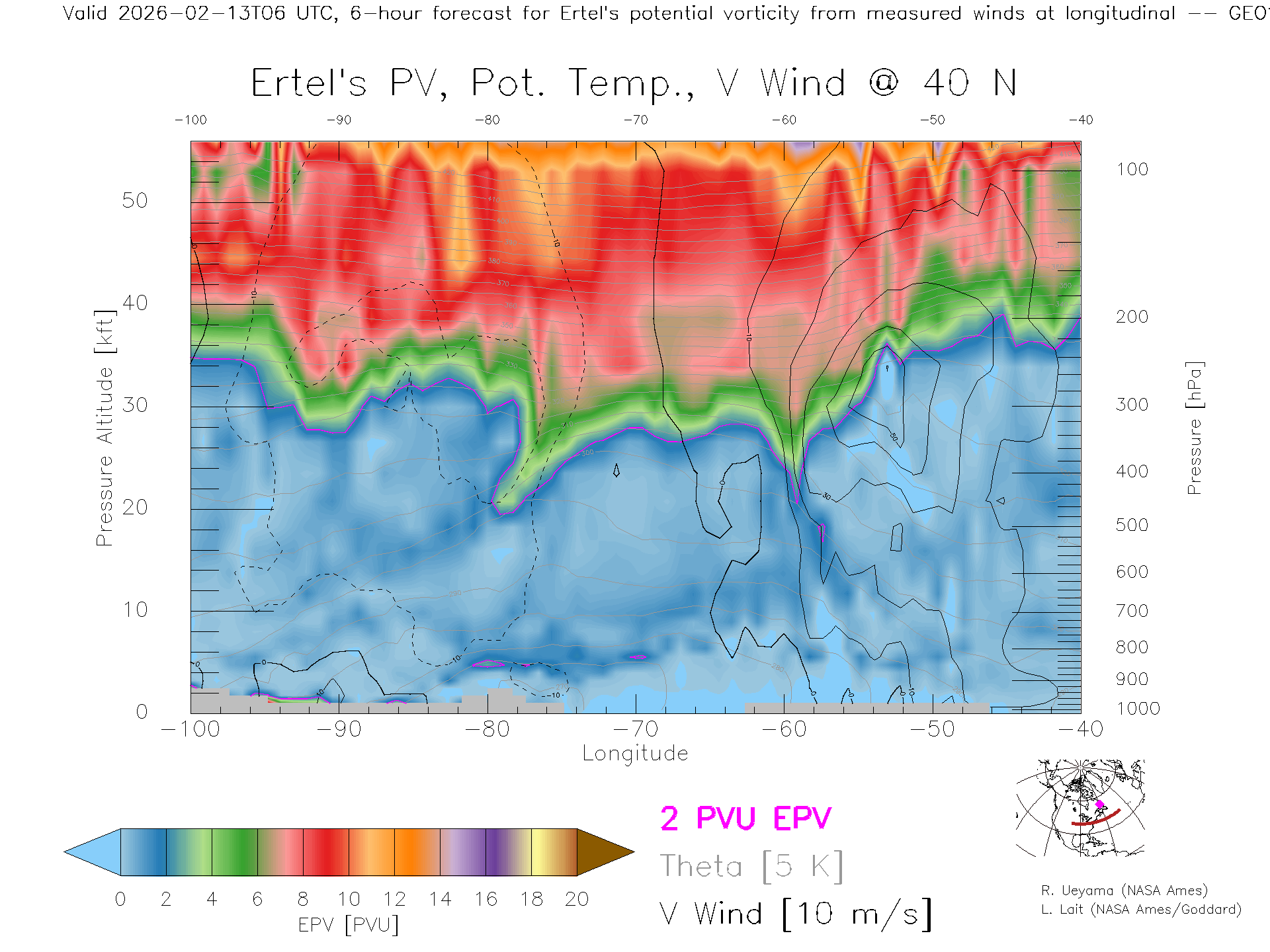 GEOS Forecast PV X-Section (40 N)